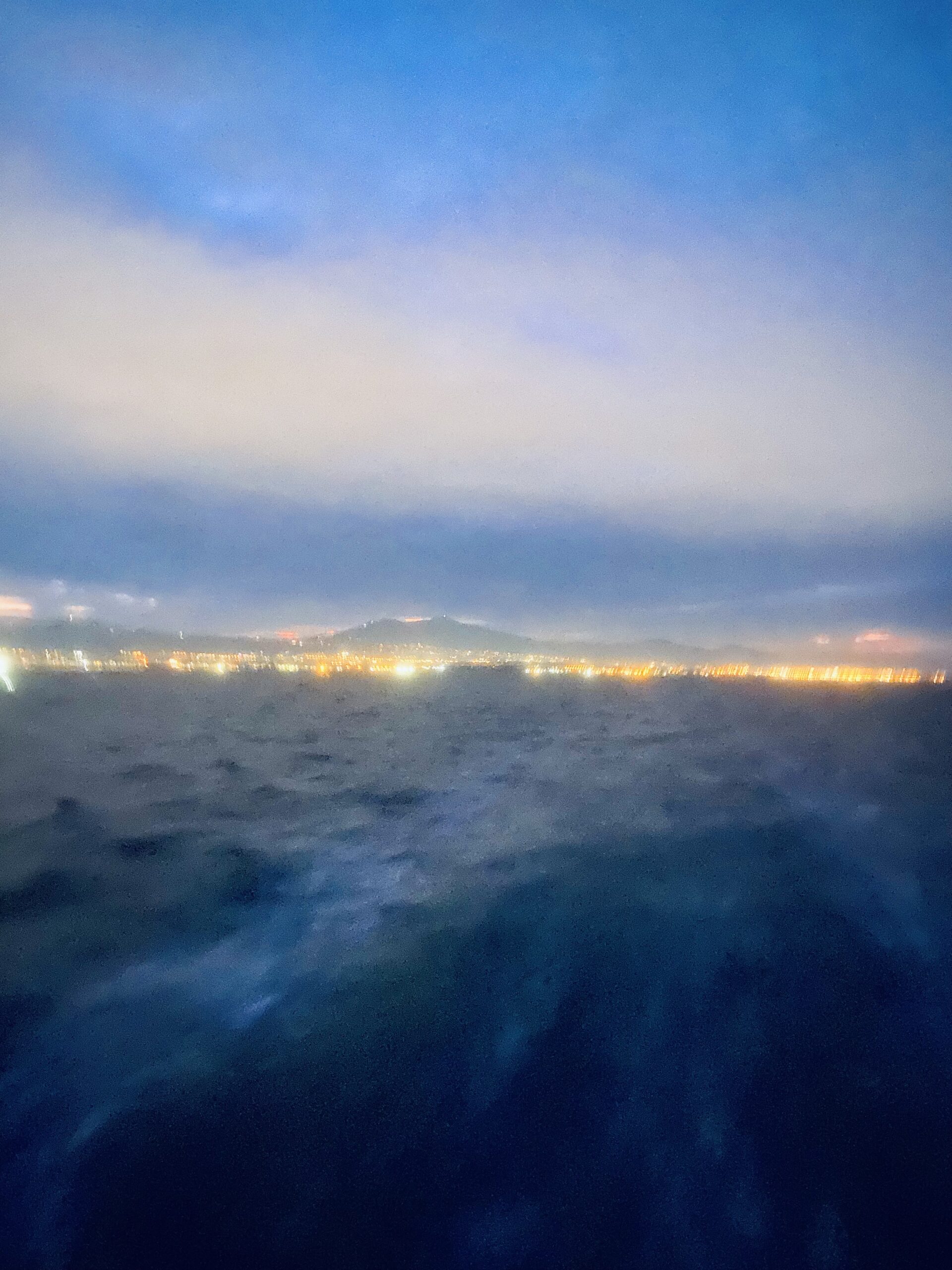 Και όσο ο ορίζοντας ξεμάκραινε και τα φώτα πλήθαιναν στα παράθυρα, η πόλη αποκτούσε μια διάσταση ονειρική, άγνωστη σχεδόν. Η πόλη από την πλευρά της θάλασσας. Που σπάνια έχεις την ευκαιρία τη θωριά της να απολαύσεις.