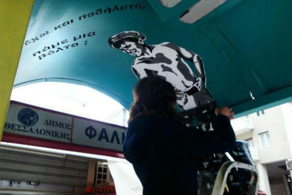 Σκηνή 1η: Η εικόνα μιας ακόμα παρατημένης στάσης σε λίγο θα είναι παρελθόν. Εν αρχή ήν το κάλεσμα. Επιλέχθηκε η στάση και το ραντεβού έκλεισε. Ο Στέλιος φέρνει τα υλικά και η διαδικασία ξεκινά: καθάρισμα, αστάρωμα και βάψιμο. Μόλις φανεί η διαδρομή Καλαμαριά-Βαρδάρη πίσω από το κιτρινισμένο τζάμι, η στάση δείχνει έτοιμη να υποδεχτεί το χρώμα.