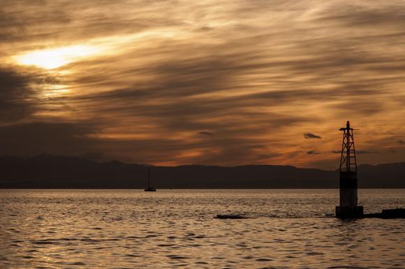 Ηλιοβασίλεμα στην παραλία της Θεσσαλονίκης, δίπλα στον ιστιοπλοϊκό όμιλο.