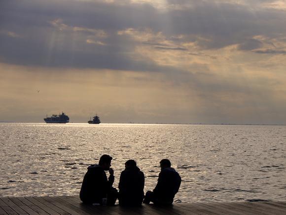 Παραλία Θεσσαλονίκης ένα συννεφιασμένο απόγευμα! Τι πιο όμορφο (κι ανέξοδο, θα συμπληρώσω…) για μια παρέα φίλων να χαλαρώνουν και να διασκεδάζουν με θέα τη θάλασσα την ώρα που πέφτει ο ήλιος, με τις ακτίνες του να διαπερνούν τα σύννεφα!