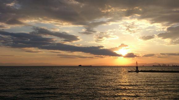 Δεν υπάρχει πιο όμορφη στιγμή από αυτή του ηλιοβασιλέματος στην νέα παραλία Θεσσαλονίκης! Οι σκιές των γερανών του λιμανιού και των ανθρώπων με φόντο τα έντονα χρώματα του ορίζοντα, που πλημμυρίζουν με πορφύρες αποχρώσεις τα νερά της θάλασσας.
