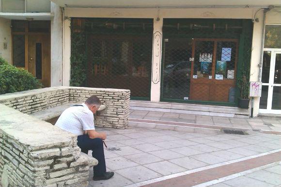 Κάθεσαι και σκας που θα βρεις χρήματα να επιπλώσεις πλήρως την επιχείρηση σου; Γιατί; Μήπως δεν έχει βάλει ο Δήμος παγκάκια που θα μπορούσες να χρησιμοποιήσεις σαν προέκταση του καταστήματος σου. Γέμισε η πόλη ευρεσιτεχνίες! Να εδώ στη διασταύρωση Καρμπολά και Τοσίτσα. Μια ωραία αντίθεση του τοπίου. Πως είναι το πρωί πριν ανοίξει το καφέ, με το παγκάκι ελεύθερο για τους πεζούς και πως μεταμορφώνεται μετά όταν γίνεται μέρος της επίπλωσης του. Βραβείο καινοτομίας!