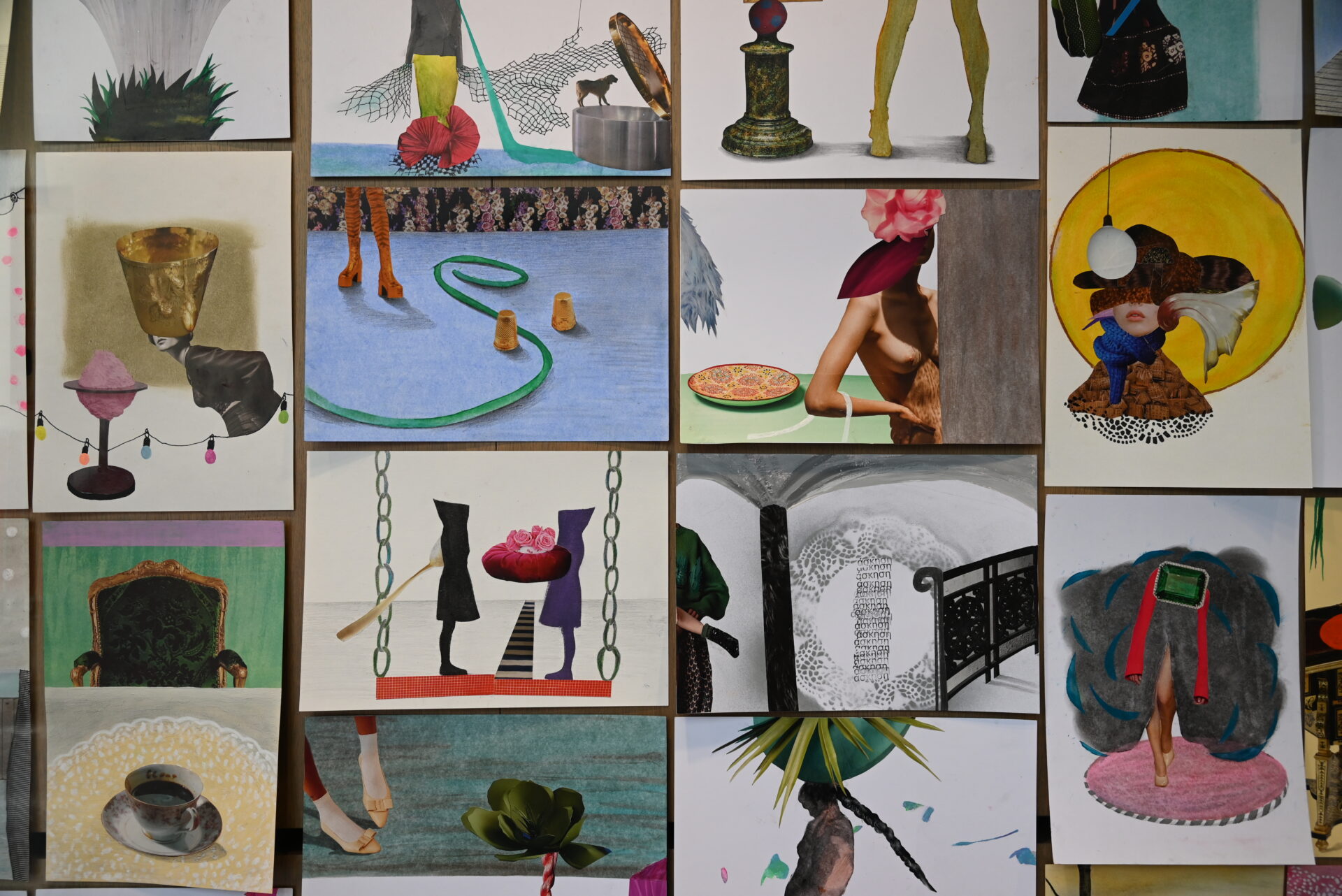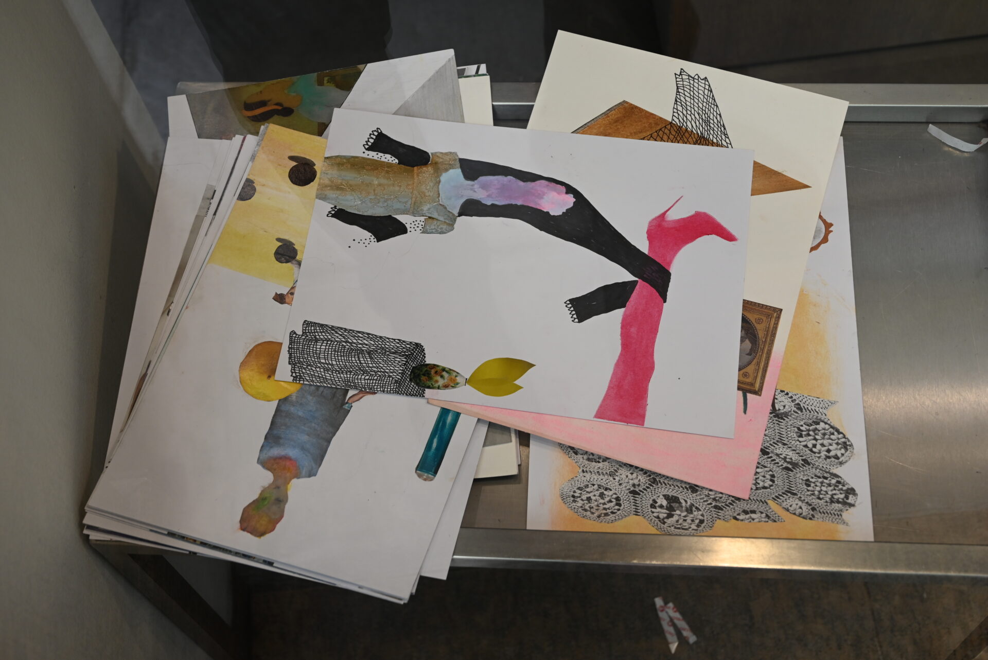 ”Μερικά έργα μου ζωγραφικά κολάζ, που δουλεύτηκαν με πολύ κέφι το τελευταίο διάστημα, έστησαν ένα δικό τους ‘’συμπόσιο’’ στη βιτρίνα του Geelist.