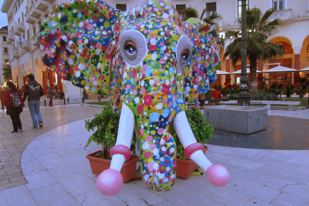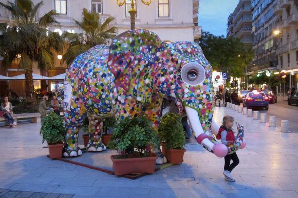 Από χτες το απόγευμα ένα συνεργείο δούλευε με ταχύτητα για να στήσει ένα σκηνικό στην Πλατεία. Ένας Ελέφαντας, από αυτούς που κοσμούσαν την ΔΕΘ κατα τη διάρκεια των Χριστουγέννων και τους είδαμε συχνά πυκνά να εμφανίζονται βαμμένοι ανάλογα με τα events που φιλοξενούνταν στην Έκθεση, τώρα βρήκε την αληθινά πραγματική του ταυτότητα. Βαμμένος με όλα τα χρώματα του ουράνου τόξου από τους αγαπημένους γκραφιτάδες της πόλης τον Ser και τη Simoni, έγινε σε λίγα λεπτά η ατραξιόν της Πλατείας, με τον κόσμο να σπεύδει να φωτογραφηθεί μαζί του, ανεξαρτήτως ηλικίας. Απέναντι δυο πρωτότυπα σπιτάκια θα υποδεχτούν το 1ο Ευρωπαϊκο Παιδικό Φεστιβάλ ένα τριήμερο εκδηλώσεων με τη συμμετοχή Ελλήνων και ξένων καλλιτεχνών από τη Ρωσία, τη Γαλλία, την Ιταλία και την Τσεχία, σε εσωτερικούς και εξωτερικούς χώρους της Θεσσαλονίκης. Και το όνομα αυτού Elephantastico.