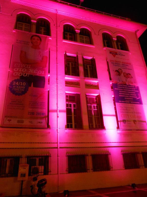 Mια πρωτοβουλία που ξεκίνησε πριν από 14 χρόνια σε παγκόσμια κλίμακα με σκοπό την ευαισθητοποίηση και την αποστιγματοποίηση του καρκίνου του μαστού, έβαψε φέτος ροζ δυο εμβληματικά σημεία της πόλης. Το πανέμορφο γλυπτό στολίδι της Νέας Παραλίας του Ζογγολόπουλου πριν 3 μέρες και σήμερα το κτίριο της ΧΑΝΘ. Εκατοντάδες κτίσματα, μνημεία, γέφυρες έχουν φωταγωγηθεί μέχρι σήμερα. Στη Θεσσαλονίκη πριν τρία χρόνια, στο πλαίσιο της εκδήλωσης “Καρκίνος του μαστού- η ζωή μετά”, είχε φωτιστεί ροζ το Μέγαρο Μουσικής.
