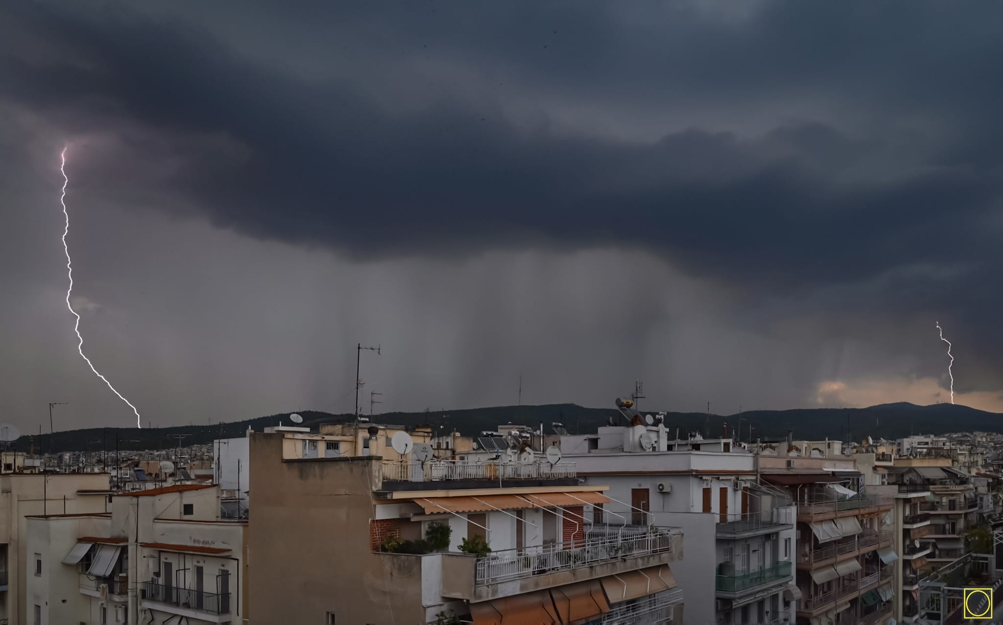 Η θεαματική σημερινή επέλαση των κεραυνών πάνω από τον ουρανό της Θεσσαλονίκης καταγράφηκε εντυπωσιακά από το φακό του Γιάννη Παρίση.