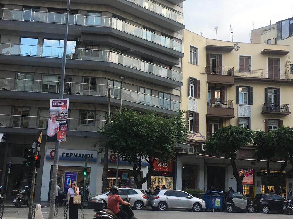 Τα banners στις κολόνες είναι παράνομα, απαγορευμένα, επικίνδυνα και παλιομοδίτικα. Επειδή αυτή τη στιγμή υπάρχουν στην οδό Τσιμισκή περισσότερα από 30 banners που ξέμειναν από τη χθεσινή προεκλογική συγκέντρωση του ΣΥΡΙΖΑ θα θέλαμε να γνωρίζουμε πότε έχουν σκοπό να τα μαζέψουν και αν ο Δήμος Θεσσαλονίκης έχει σκοπό να καταλογίσει τα πρόστιμα όπως οφείλει και να διεκδικήσει την είσπραξη τους.