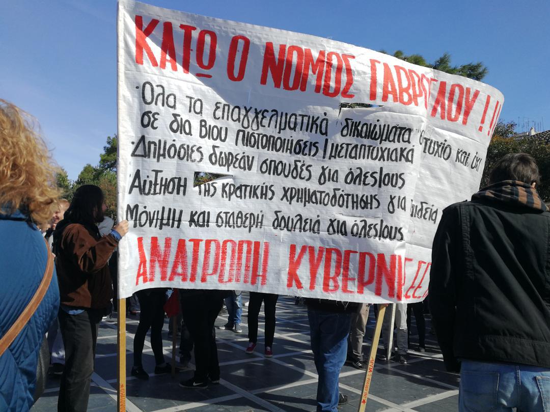 Στο υπουργείο Μακεδονίας – Θράκης κατέληξε η διαμαρτυρία εκπαιδευτικών, μαθητών και γονέων σχολείων της Θεσσαλονίκης για τα προβλήματα στην Παιδεία. Οι διαδηλωτές συγκεντρώθηκαν μπροστά στο άγαλμα του Ελ. Βενιζέλου και από εκεί κινήθηκαν με πορεία στο υπουργείο, όπου ανάρτησαν πανό και φώναξαν συνθήματα κατά του «νόμου Γαβρόγλου».