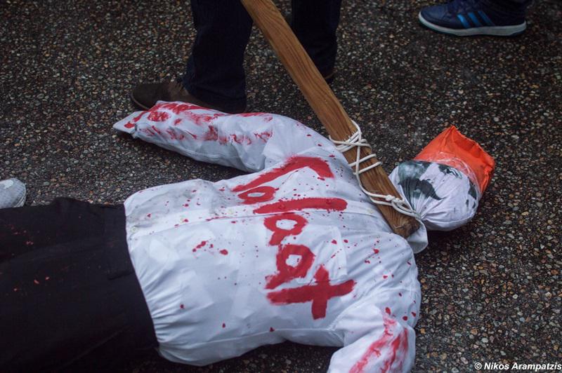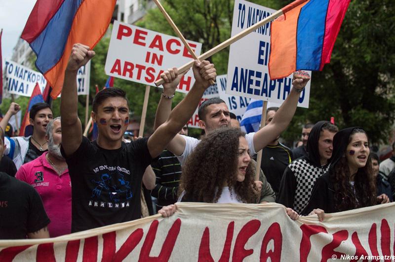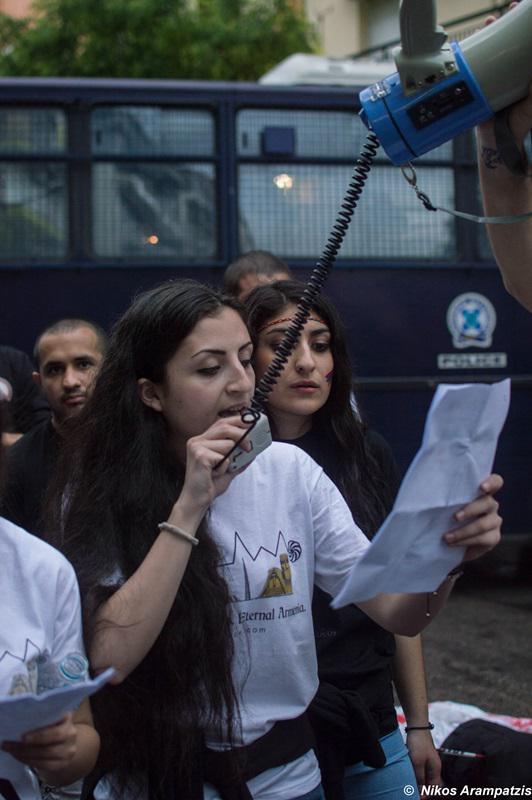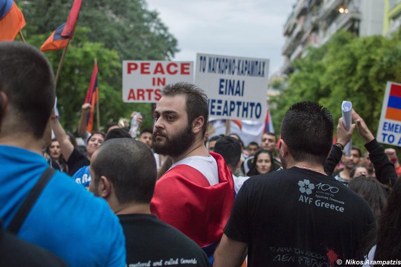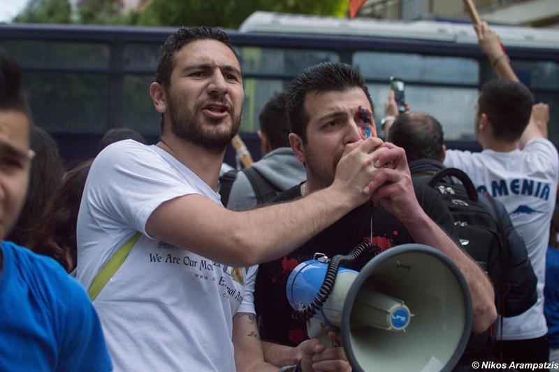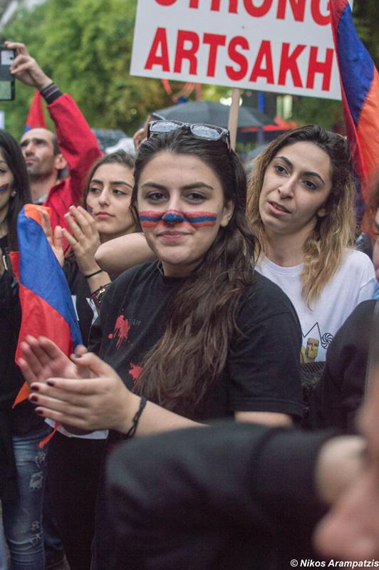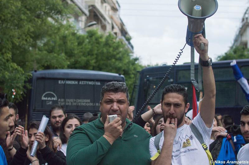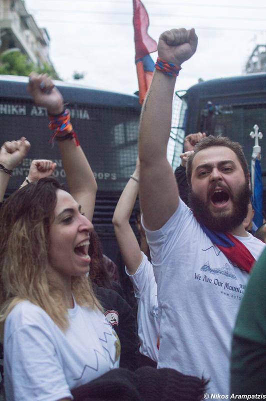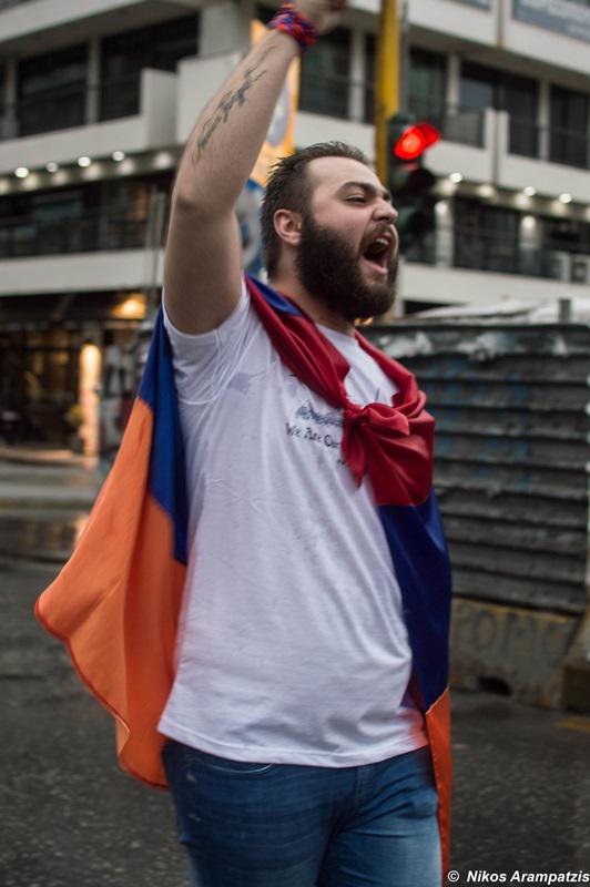 Τα συνθήματα και οι συμβολικές κινήσεις, όπως το κάψιμο ενός ομοιώματος Τούρκου, κυριάρχησαν και οδήγησαν σε ένταση ενώ οι διαδηλωτές ήταν κυρίως νέοι της αρμένικης νεολαίας.