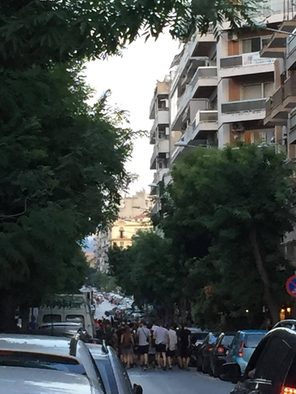 Μέχρι τις 8 ήταν συγκεντρωμένοι ακόμη στο κτίριο με μουσικές και γύρω στα 15 άτομα πριν ξεκινήσουν την πορεία πριν λίγο.