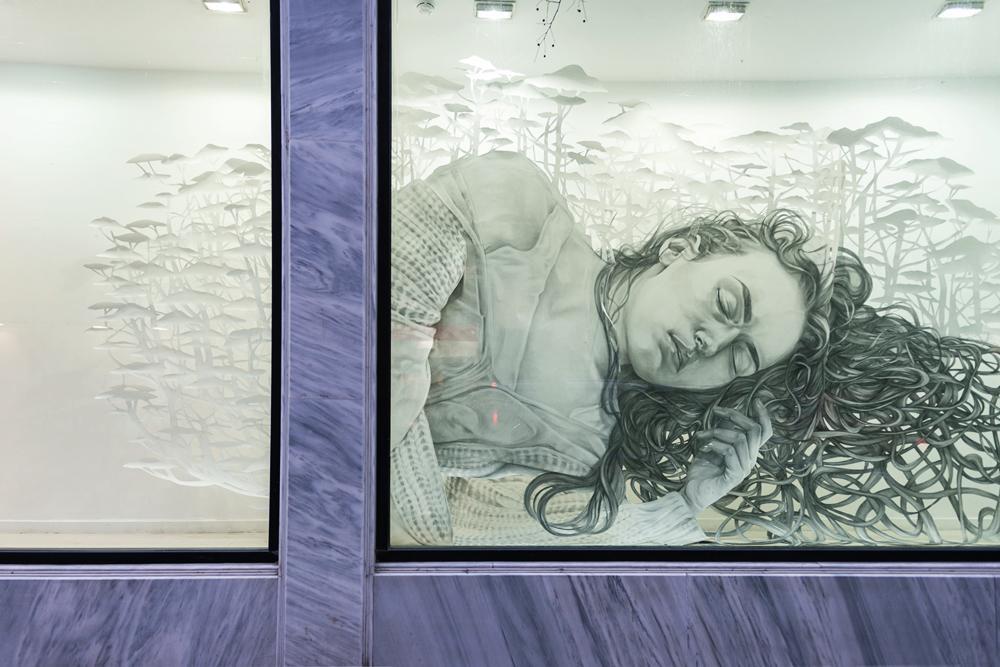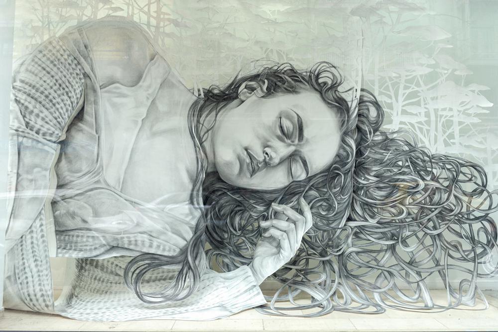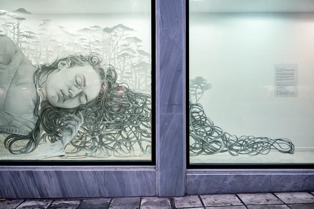 Πρόκειται για μια χαρτοκοπτική εγκατάσταση της καλλιτέχνη Θεανώς Γιαννέζη, η οποία αποτυπώνει μια κοιμώμενη μορφή γυναίκας, εντυπωσιάζοντας και σταματώντας τον περαστικό.
