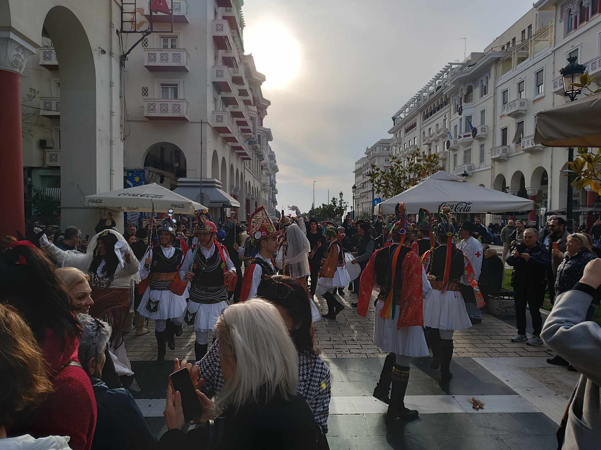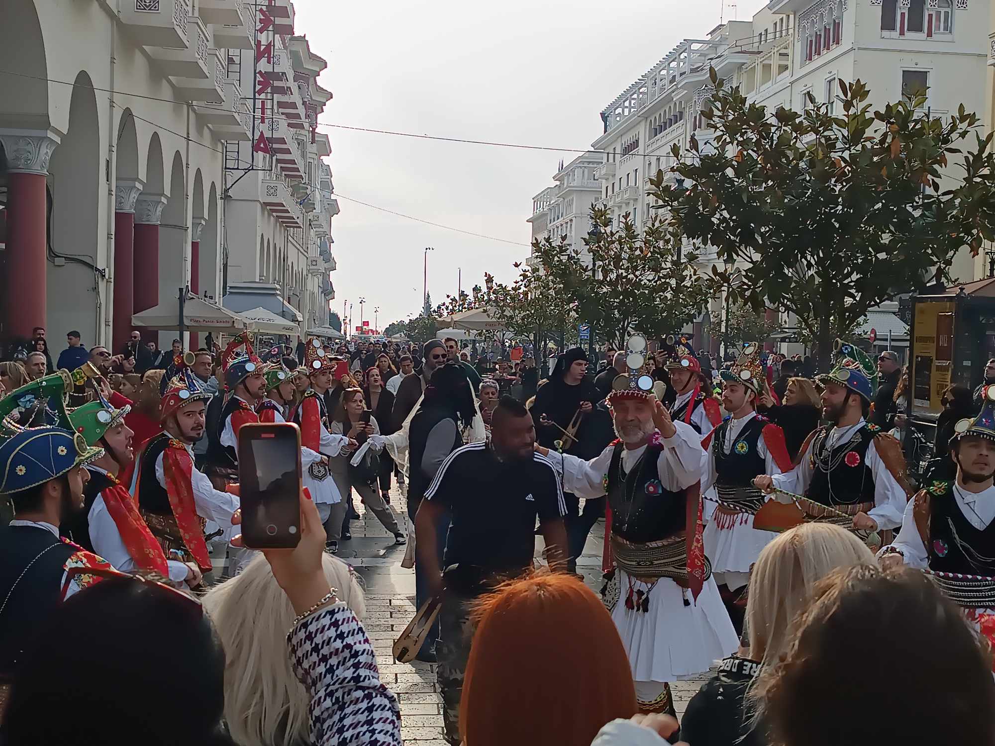 Μωμόγεροι γλεντάνε με χορό και τραγούδι στο κέντρο της Θεσσαλονίκης