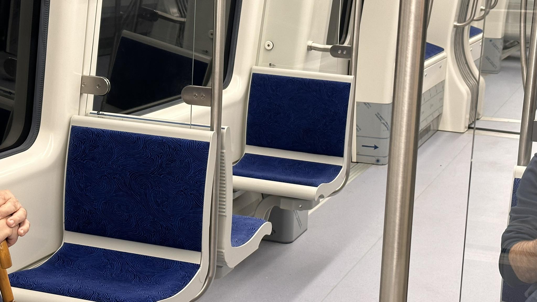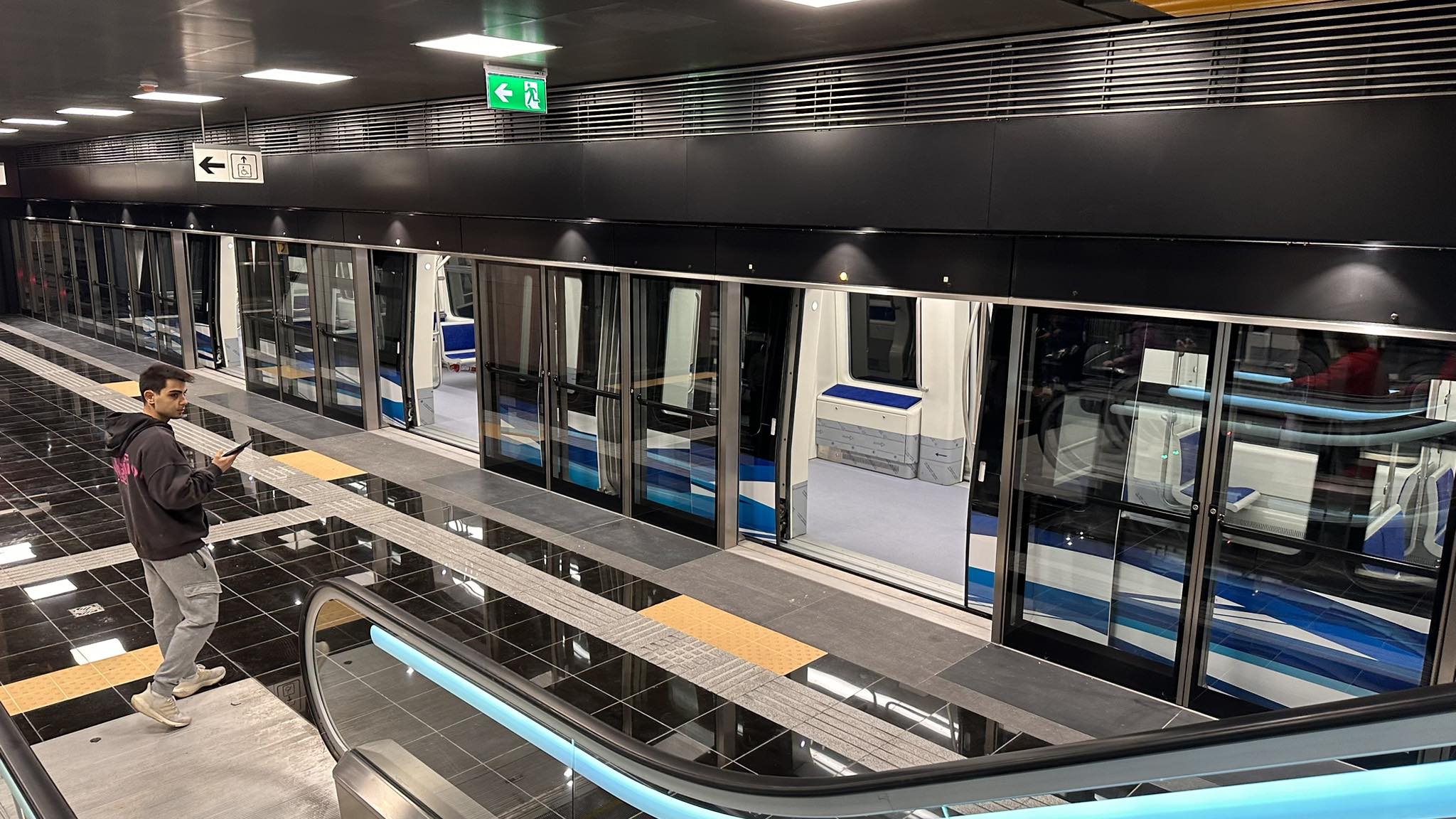 Μπροστά από τα βαγόνια έχει πόρτες ασφαλείας και δεν υπάρχει οδηγός, καθώς το μετρό είναι αυτόματο.