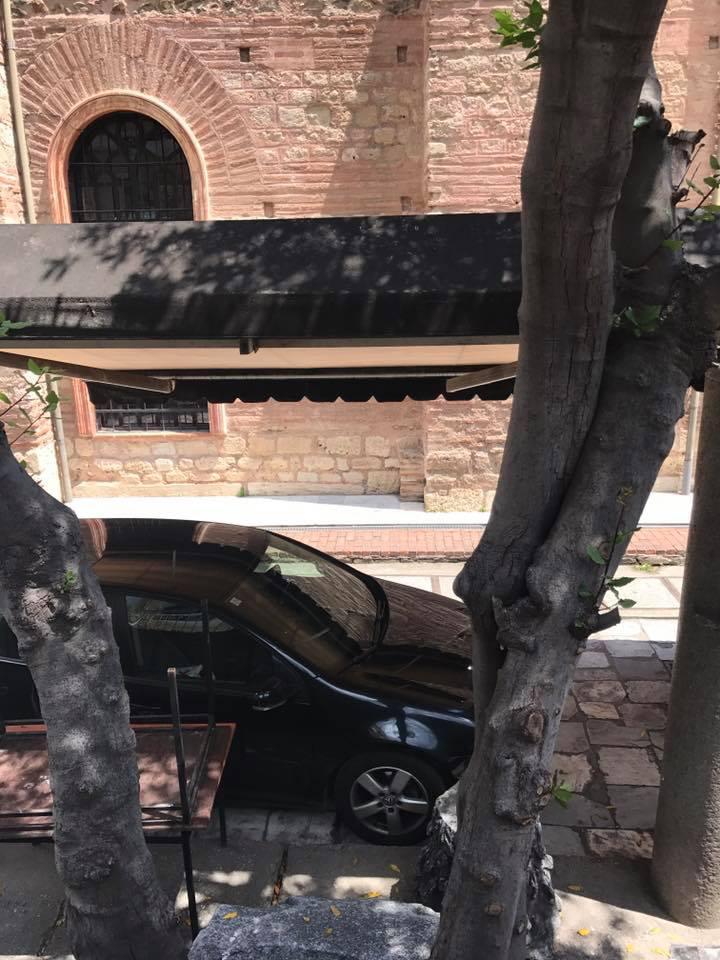 Για τον αυλόγυρο της εμβληματικής εκκλησίας της Αγίας Σοφίας έχουμε αναφερθεί πλειστάκις αλλά δεν ιδρώνουν τα αυτάκια των υπευθύνων. Ούτε από τις υποδείξεις και τις επιστολές που τους έχουν σταλεί από την Εφορεία Μνημείων για ρητή απαγόρευση παρκαρίσματος των αυτοκινήτων στον περιβάλλοντα χώρο του μνημείου, μηδενός εξαιρουμένου.