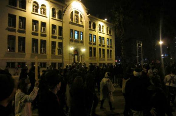Κάποια στιγμή είδα και μια διμοιρία των ΜΑΤ η οποία έκανε κι αυτή μια παράλληλη πορεία με αυτή των ζόμπι, φοβούμενη ίσως τις “φαινομενικά άγριες και πεινασμένες διαθέσεις” του πλήθους. Για λόγους άγνωστους έβγαλαν κακήν κακώς μερικά “πεινασμένα” ζόμπι από το κτίριο της ΧΑΝΘ και έπειτα στάθηκαν φρουροί στην είσοδο. Εκείνη τη στιγμή δημιουργήθηκε μια ένταση που ευτυχώς αποφορτίστηκε γρήγορα, μιας και επικράτησαν οι λογικότεροι που επικεντρώθηκαν στη συνέχιση της πορείας και όχι σε ανούσιες αντιπαραθέσεις. Αν και γενικα είναι δύσκολο σε κάθε είδους πορεία να έλεγξει κανείς το ποιος θα εισέλθει και με τι διαθέσεις, γενικά υπήρχε ένα χαλαρό κλίμα και οι περισσότεροι επικεντρώθηκαν στο να περάσουν καλά.