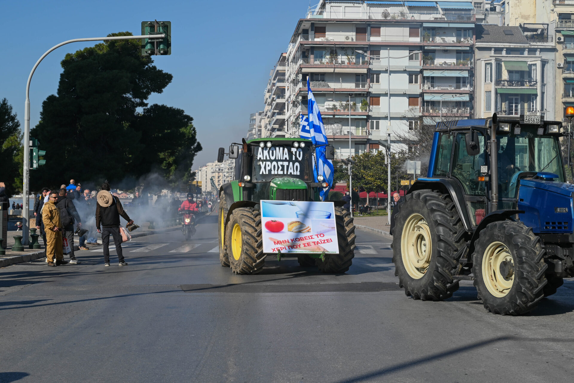 «No farmer, no food, ακόμα το χρωστάω» – Η διαμαρτυρία των αγροτών στη Θεσσαλονίκη σε εικόνες