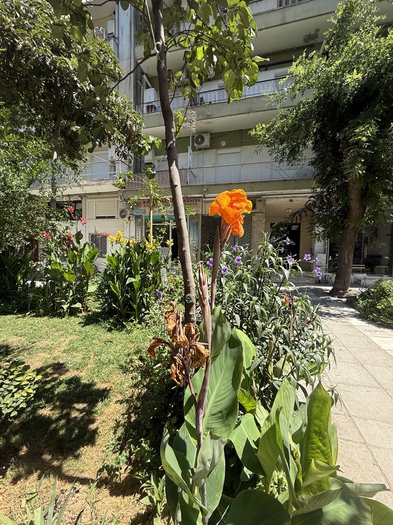 Διασχίζοντας την οδό Ολύμπου, με κατεύθυνση το κέντρο, μια εντυπωσιακή έκπληξη σε περιμένει. Τρια από τα ωραιότερα παρτέρια της πόλης βρίσκονται στον αριθμό 121 του δρόμου, στη γωνία με την Ιουλιανού.