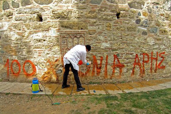 Σήμερα, μια επιχείρηση καθαρισμού πραγματοποιήθηκε για τον καθαρισμό των μαρμάρων και των μνημείων που βάφτηκαν με σπρέι από οπαδούς του Άρη την 25η Μαρτίου. Τα έξοδα για τον καθαρισμό των μνημείων ανέλαβε η Πολιτιστική Εταιρεία Επιχειρηματιών Βορείου Ελλάδος και το τοπίο θα αργήσει να βρει την παλιά του εικόνα. Η αρχή έγινε όμως.