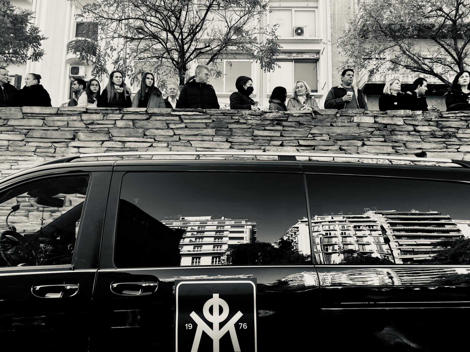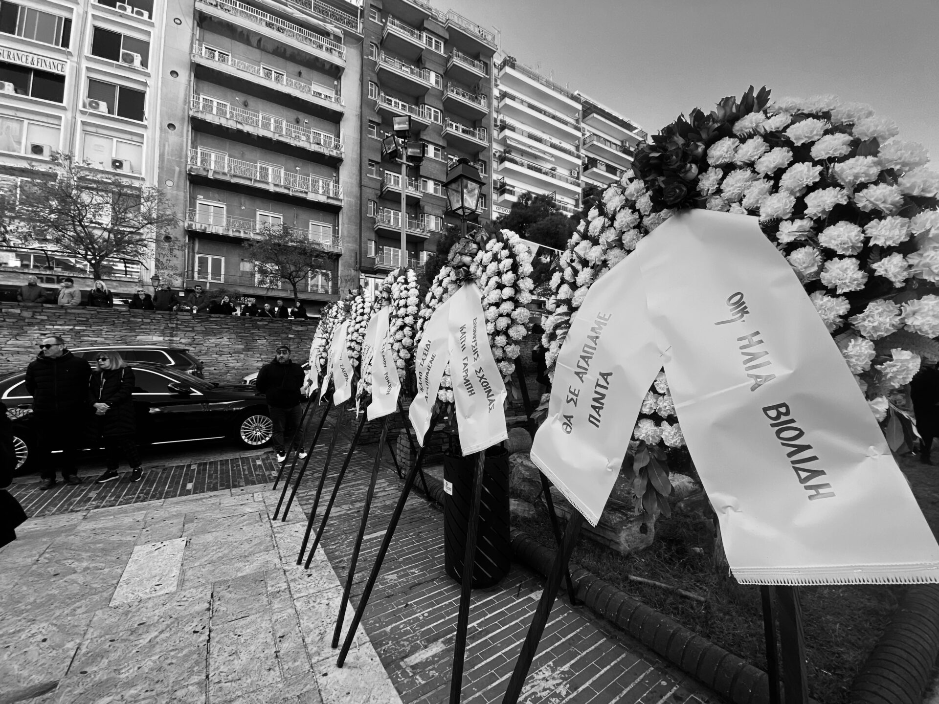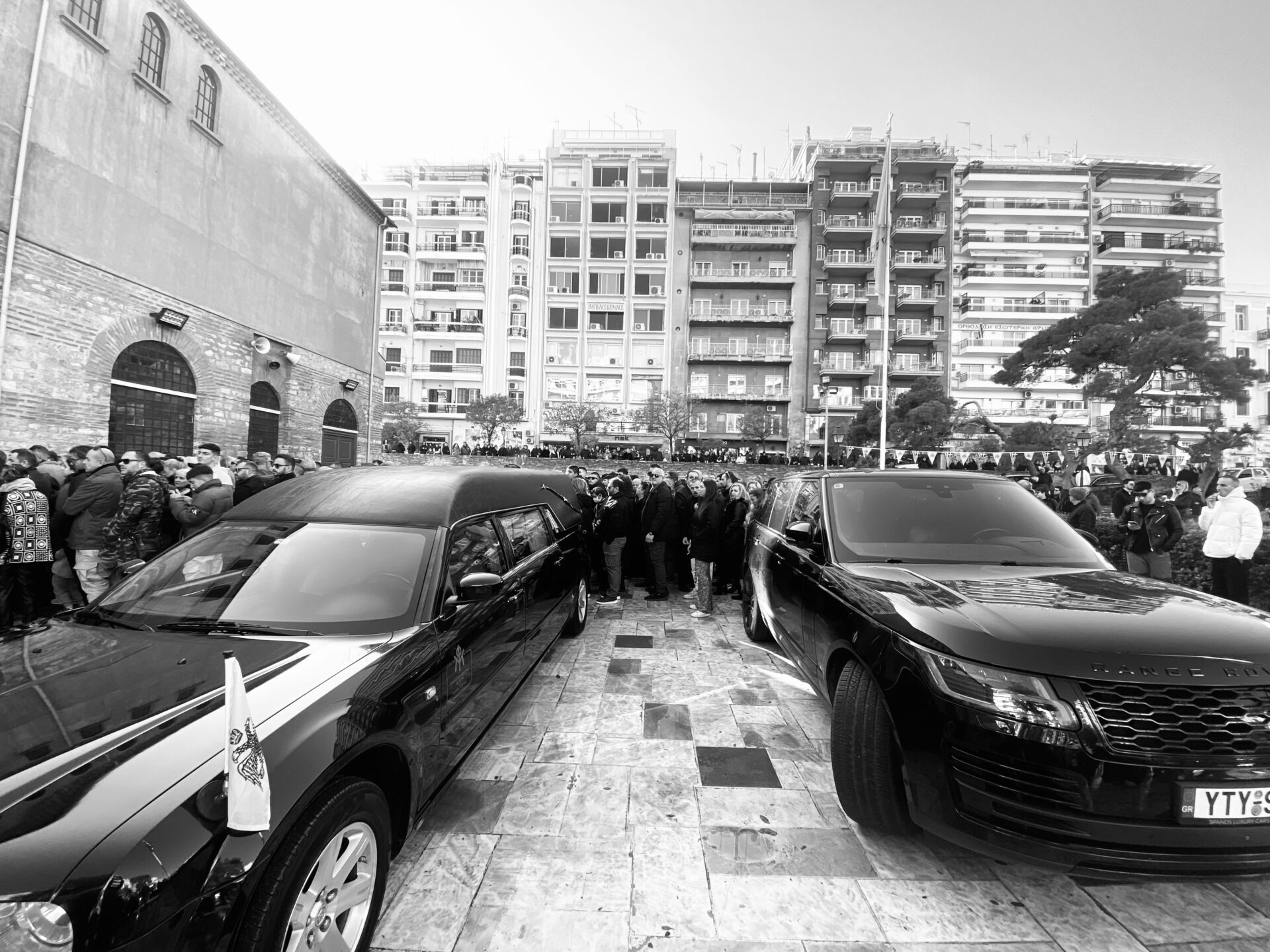 Κοιτάζω τα πρόσωπα των ανδρών που κλαίνε βουβά. Των γυναικών που κρατάνε λίγα γαρύφαλλα. Των νεαρότερων που τον έμαθαν από τους δικούς τους. Των τσιγγάνων που ξέρω από τη γειτονιά του Δεντροποτάμου. Των βαρόνων της νύχτας της πόλης. Αλλά και των σερβιτόρων και των λουλουδούδων από τα μαγαζιά που δούλευε. Σε αυτό το πάνδημο πένθος.