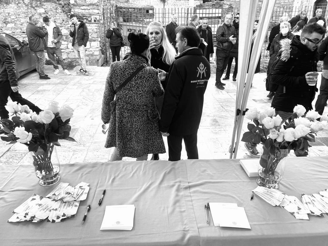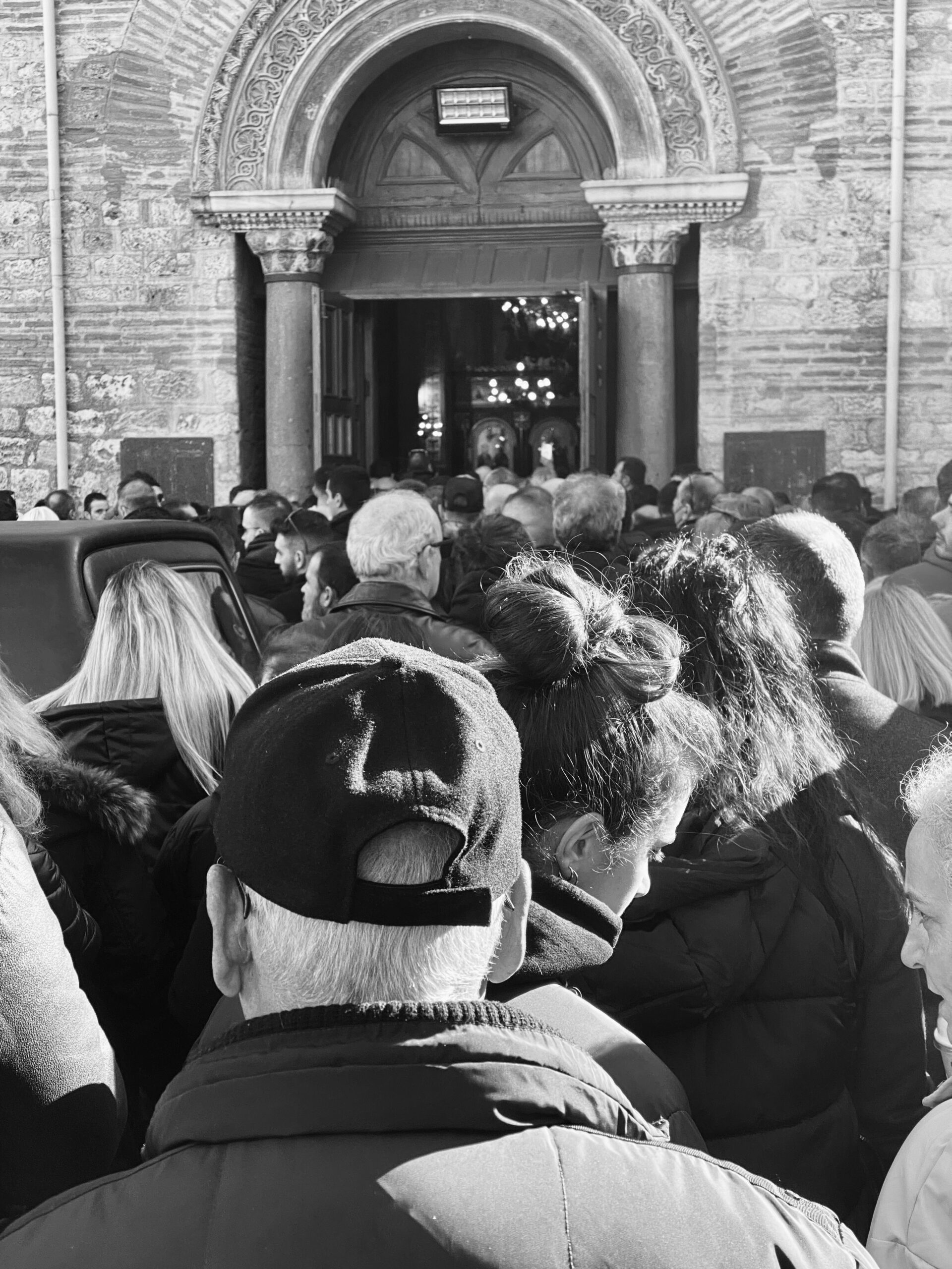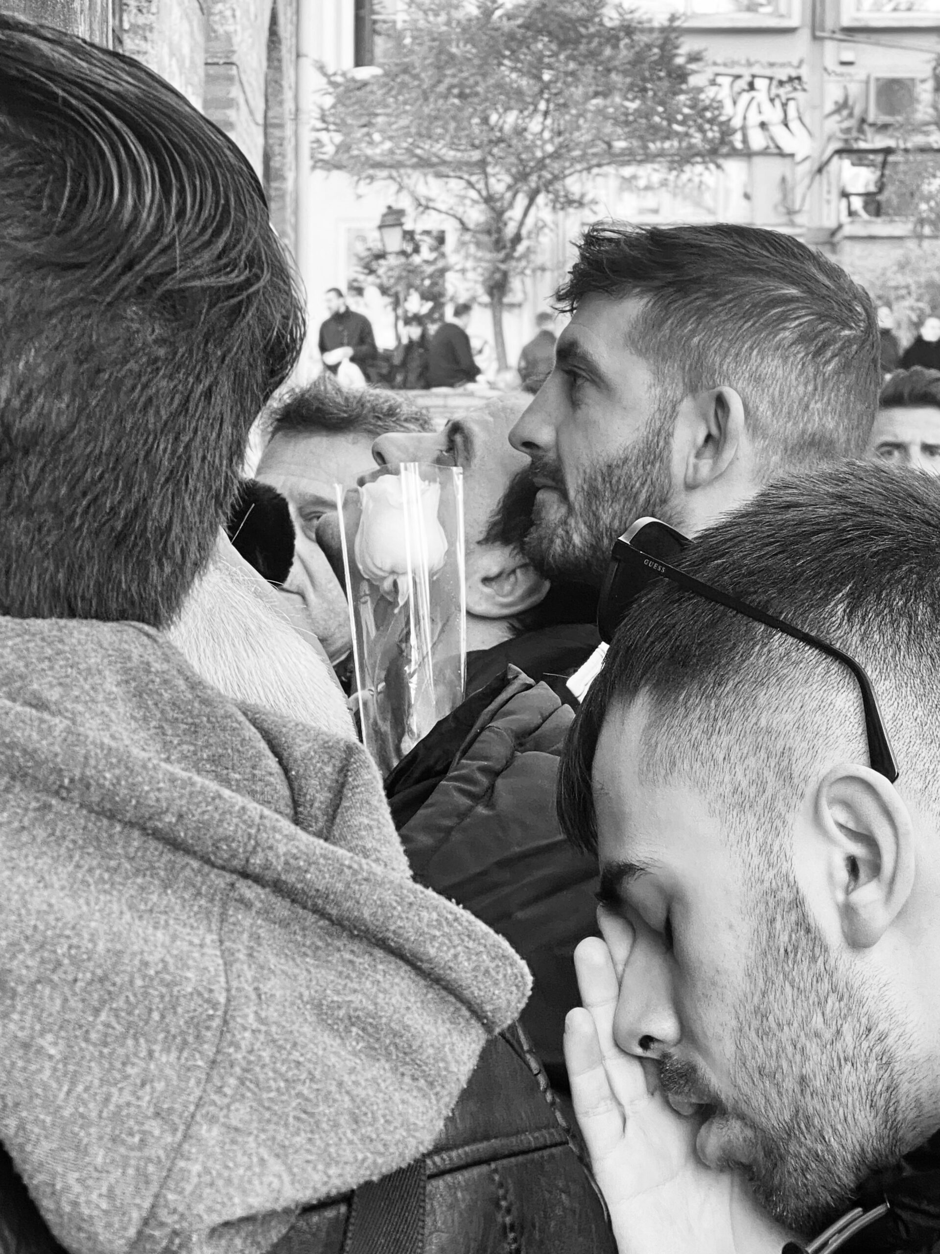 Κοιτάζω τα πρόσωπα των ανδρών που κλαίνε βουβά. Των γυναικών που κρατάνε λίγα γαρύφαλλα. Των νεαρότερων που τον έμαθαν από τους δικούς τους. Των τσιγγάνων που ξέρω από τη γειτονιά του Δεντροποτάμου. Των βαρόνων της νύχτας της πόλης. Αλλά και των σερβιτόρων και των λουλουδούδων από τα μαγαζιά που δούλευε. Σε αυτό το πάνδημο πένθος.