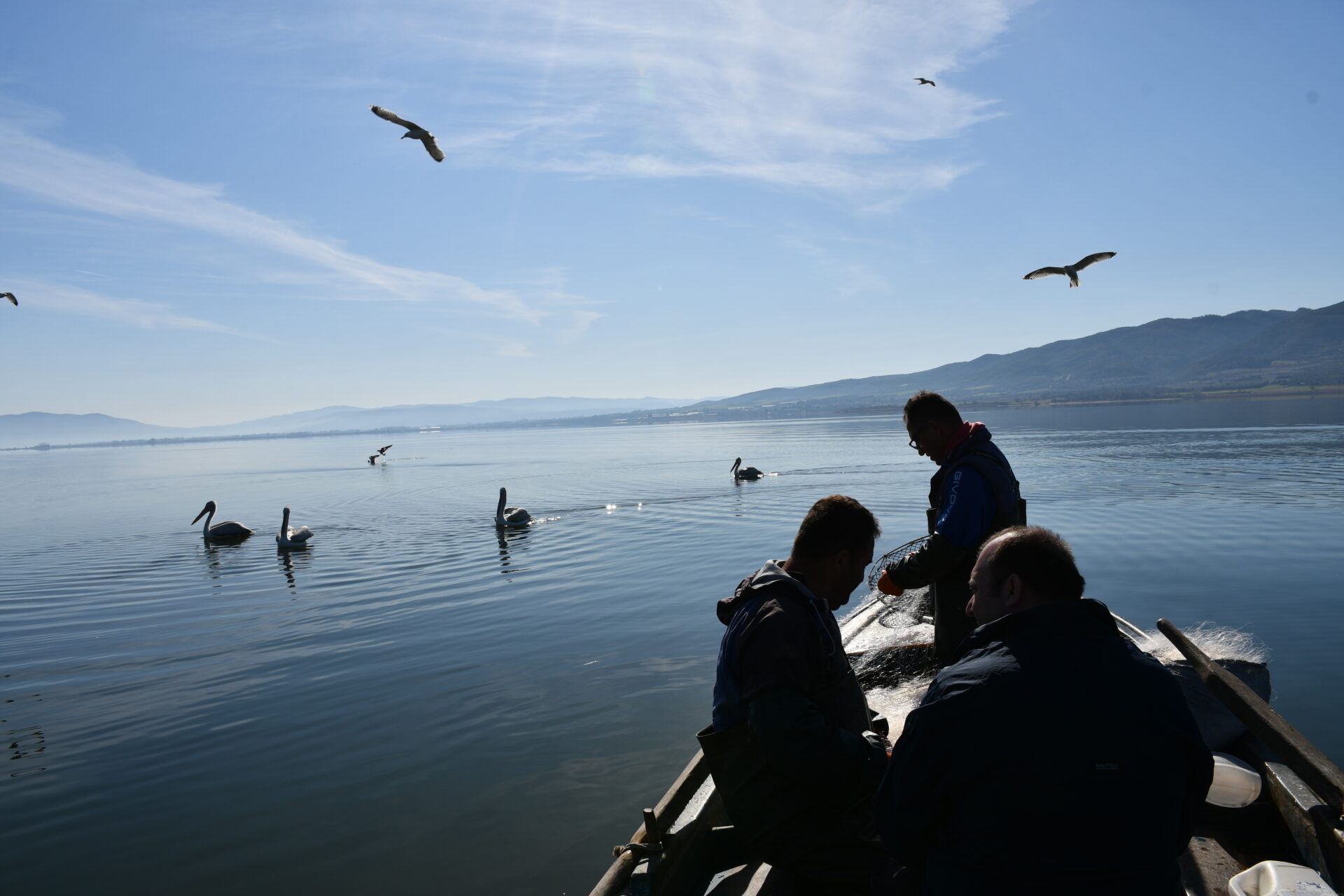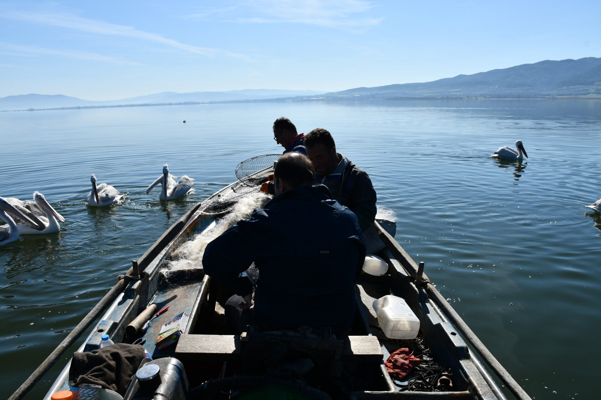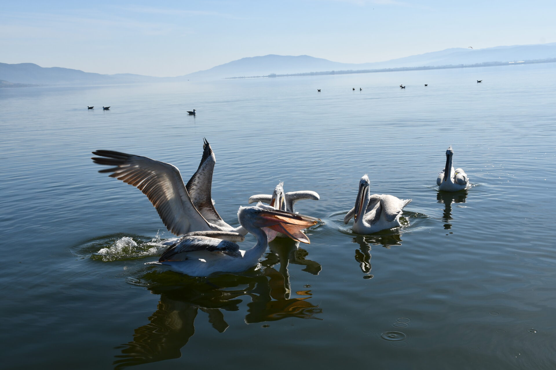 Οι σπάνιοι αργυροπελεκάνοι σε ένα μοναδικό στον κόσμο γεύμα λιπαριάς στη λίμνη Βόλβη