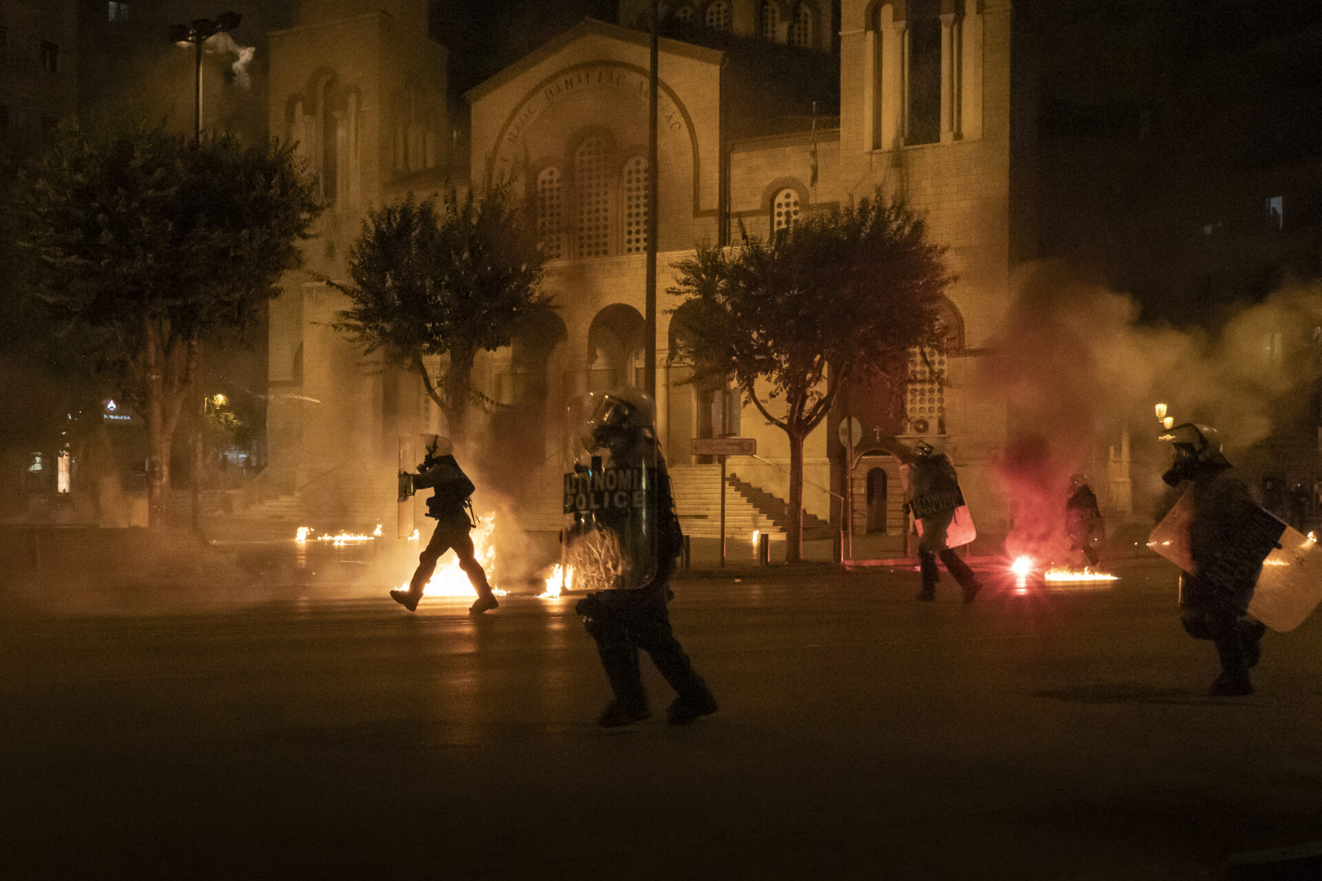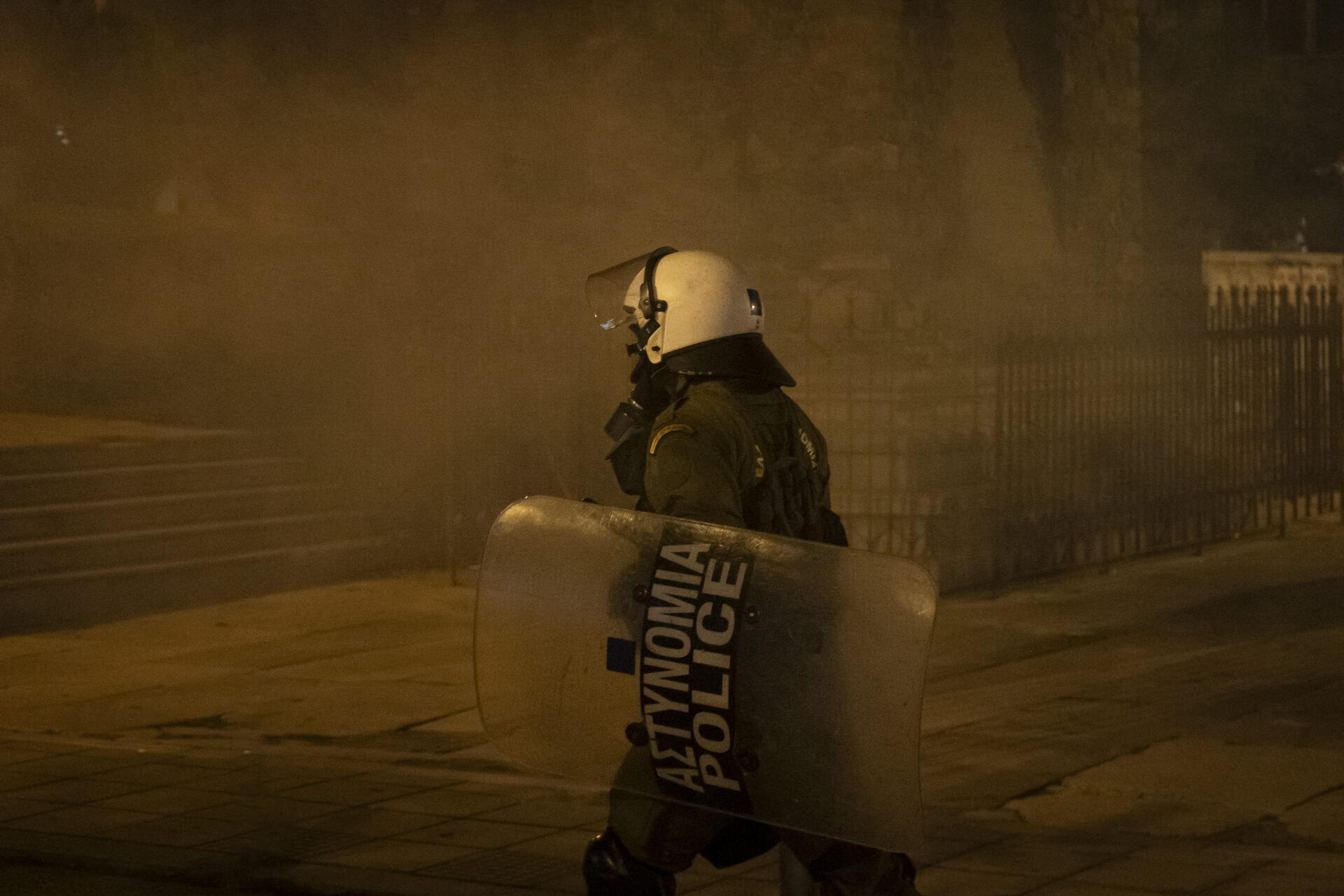 Μετά τη λήξη της πορείας, ξέσπασαν επεισόδια στην περιοχή της Καμάρας, με ρίψη δακρυγόνων και δέκα προσαγωγές.