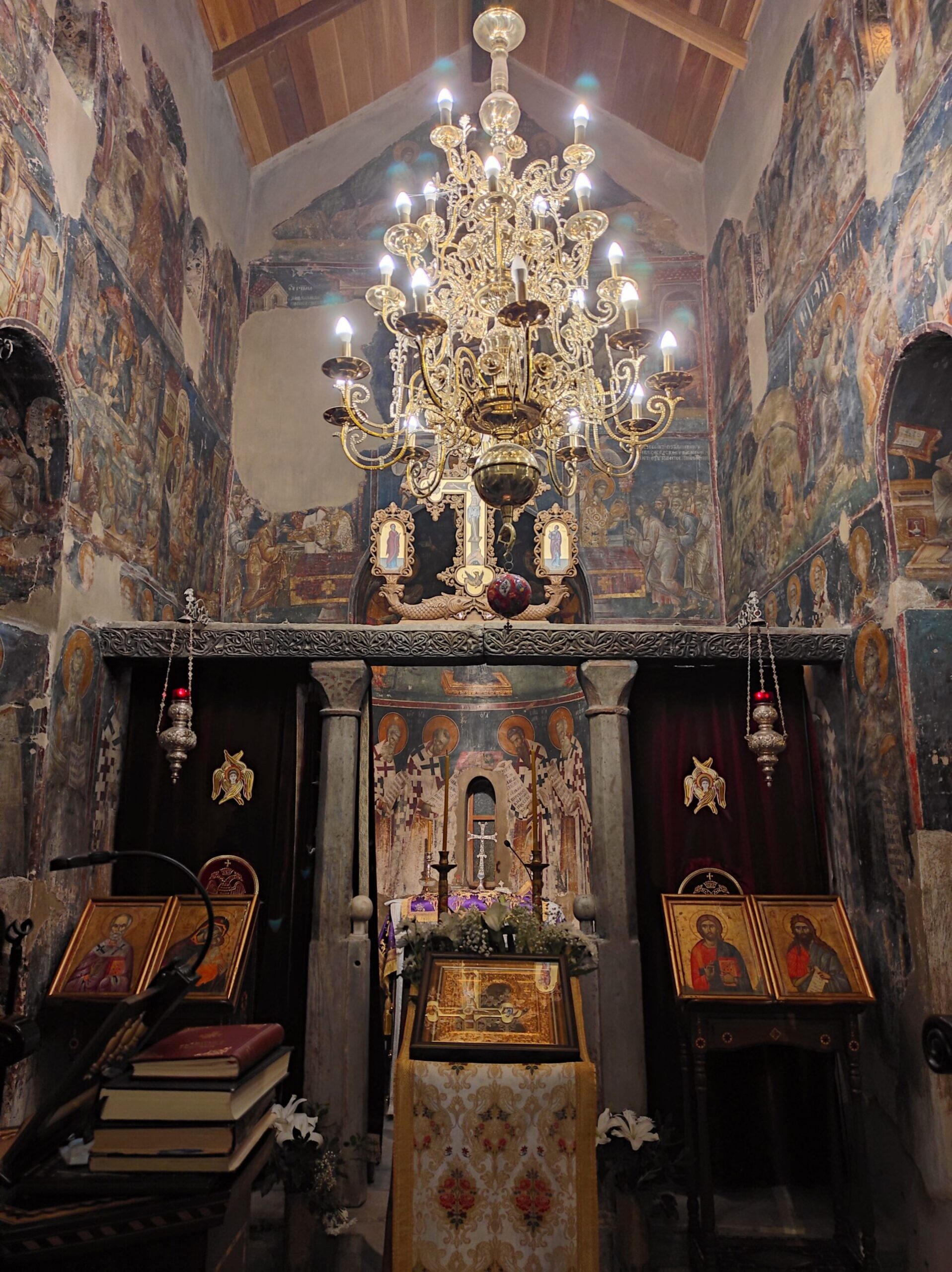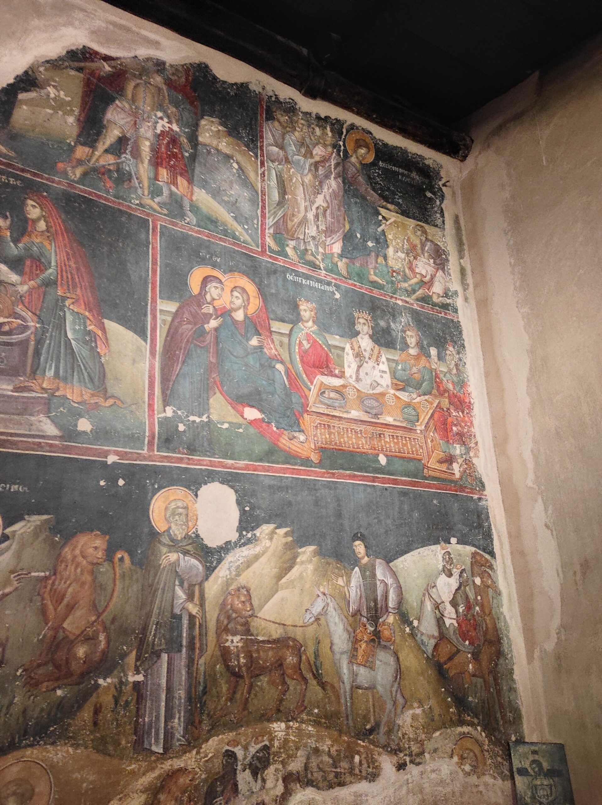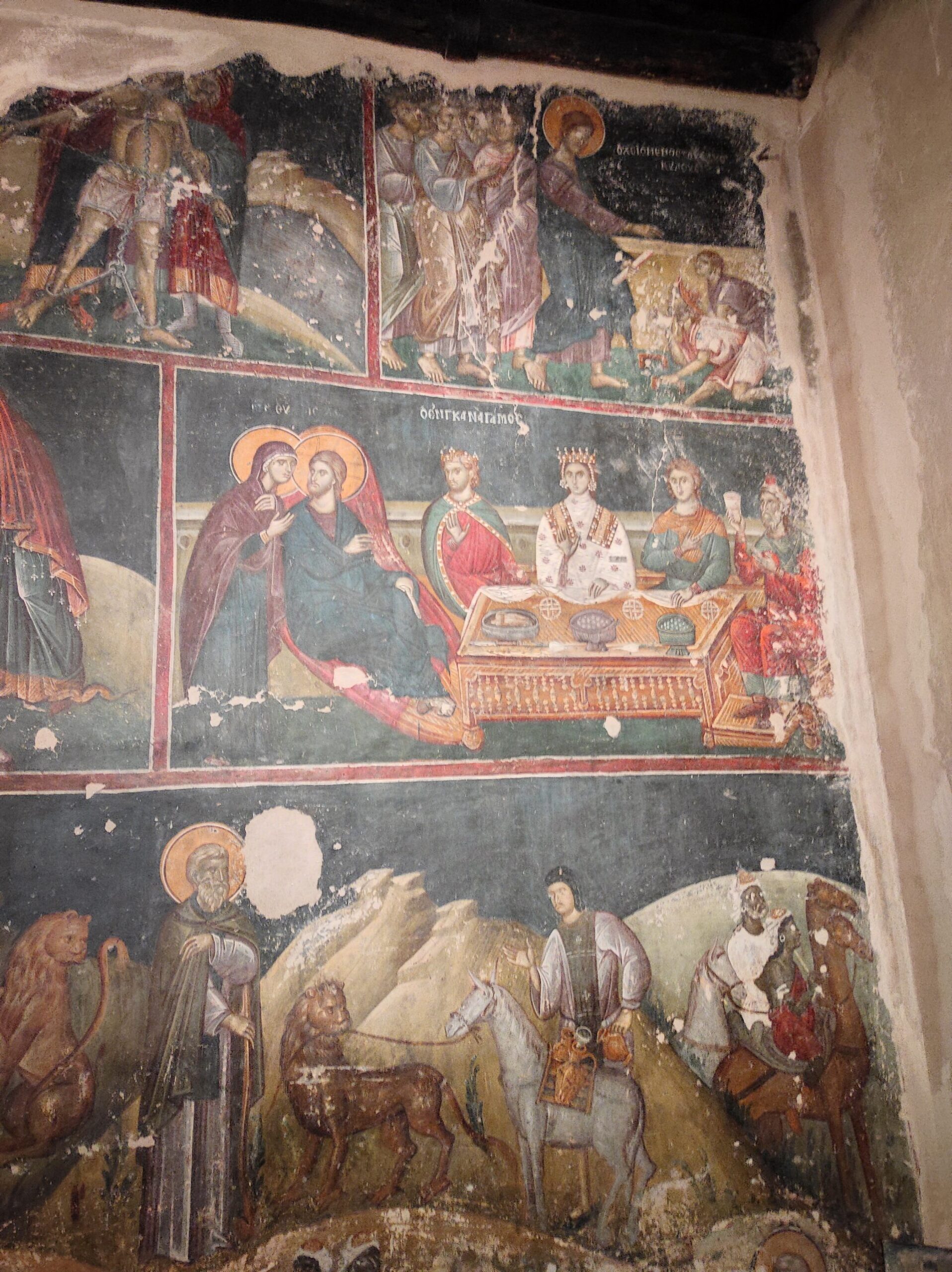 Κατά τις ημέρες των Χαιρετισμών, οι τοιχογραφίες του 14ου αιώνα από ζωγράφους της Μακεδονικής Σχολής, στο άκουσμα του Ακάθιστου Ύμνου μοιάζουν να ζωντανεύουν δημιουργώντας με τον περιβάλλοντα χώρο του ναού, μια μοναδική κατάνυξη.