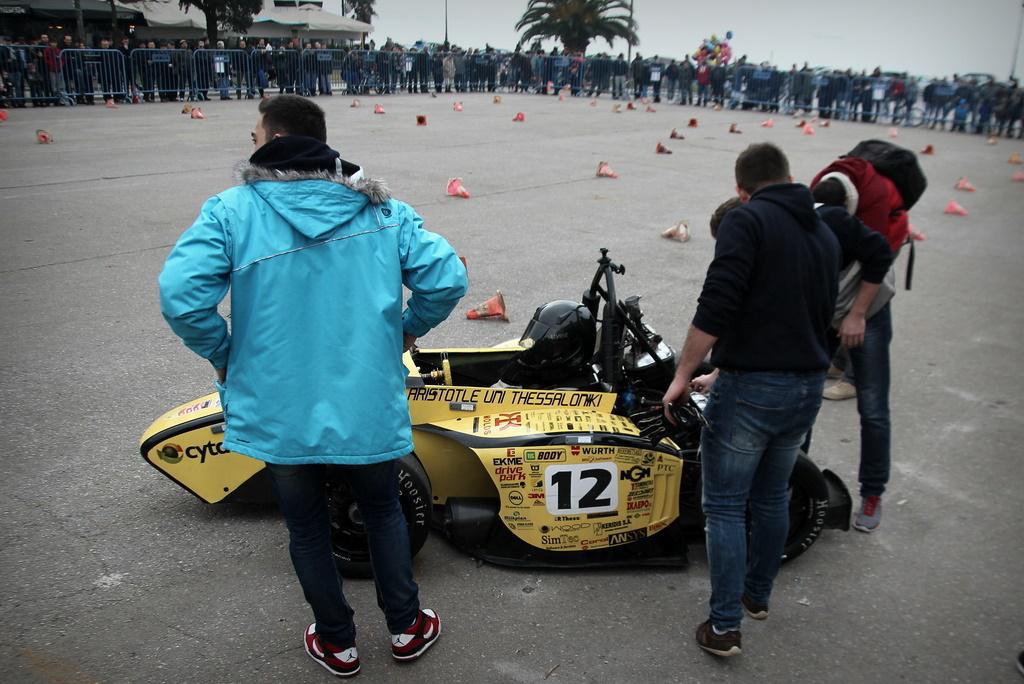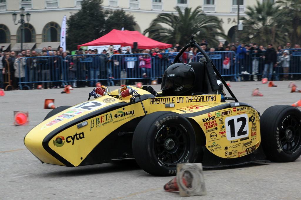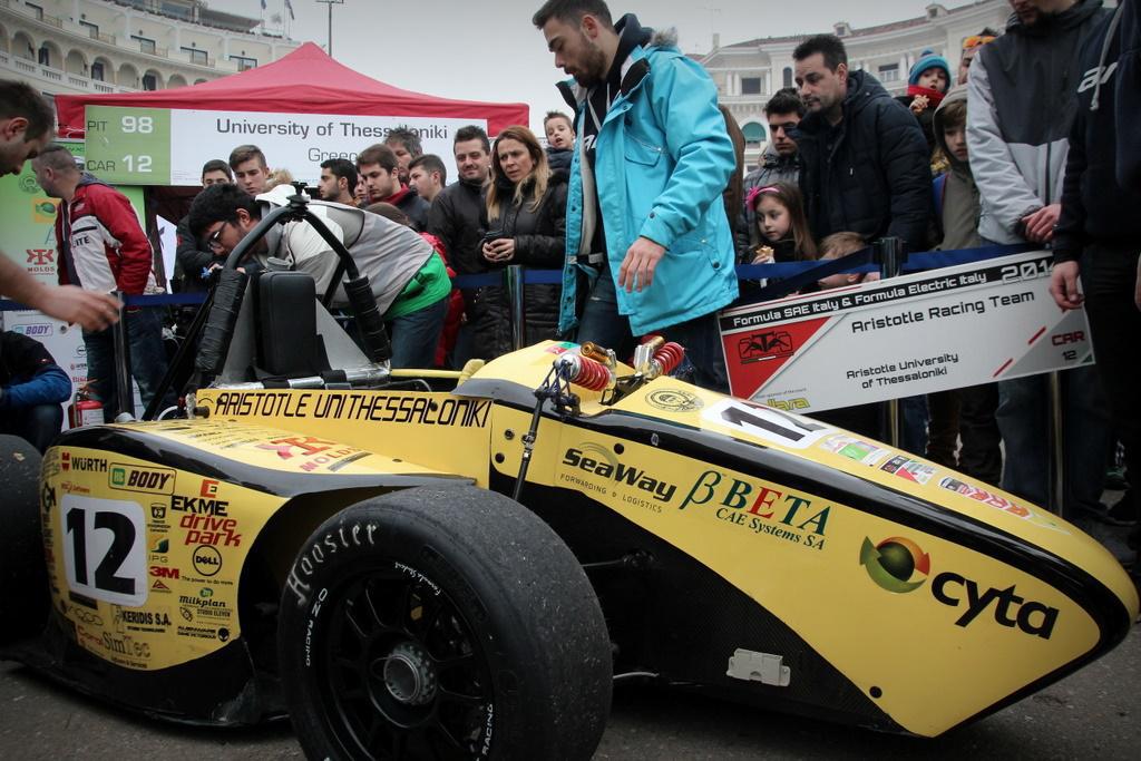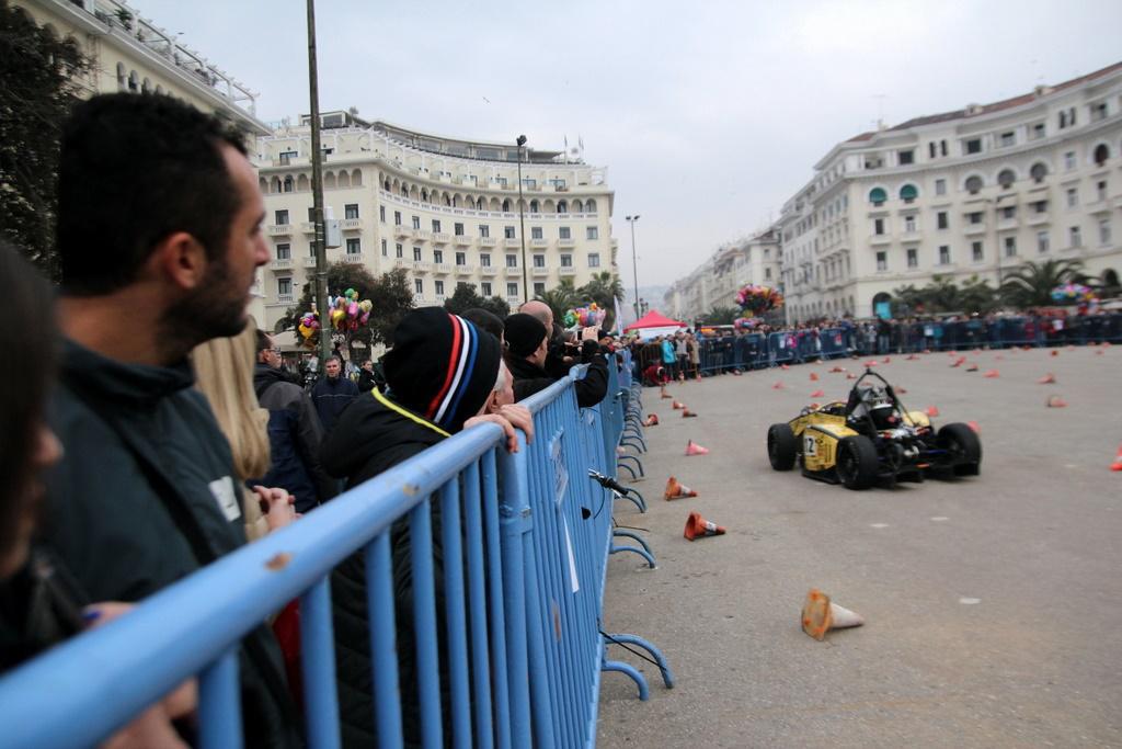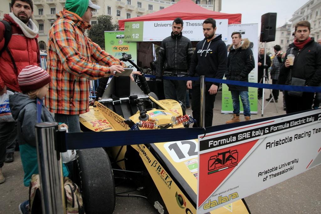 Έχει γίνει πλέον “κέντρο επιχειρήσεων” η αγαπημένη μας Πλατεία. Την έχουμε δει να μεταμορφώνεται σε γήπεδο ποδοσφαίρου, ράγκμπι και beach voley. Σε μέγαρο μουσικής και σε αίθουσα χορού. Σε υπάιθριο σινεμά και λιβάδι για πικ νικ. Σήμερα έτρεξε στην επιφάνεια της στη διάρκεια επίδειξης το διάσημο μικρό αγωνιστικό με τα πολλά βραβεία. Το μονοθέσιο της ομάδας ART (Aristotle Racing Team) του τµήµατος Μηχανολόγων Μηχανικών της Πολυτεχνικής Σχολής του ΑΠΘ, είναι μια από τις πιο ωραίες δημιουργικές ιστορίες της πόλης για την οποία είμαστε όλοι περήφανοι, που γνώρισε σημαντικές διακρίσεις σε διεθνείς διαγωνισμούς. Η εκδήλωση, με τίτλο «Thessaloniki Formula Show» περιλάμβανε happenings, κληρώσεις και μουσικές θα διαρκέσουν μέχρι τις 8 το βράδυ. Κατά τη διάρκεια της εκδήλωσης το κοινό έχει τη δυνατότητα, μεταξύ άλλων, να φωτογραφηθεί με το πετυχημένο μονοθέσιο ART-12.