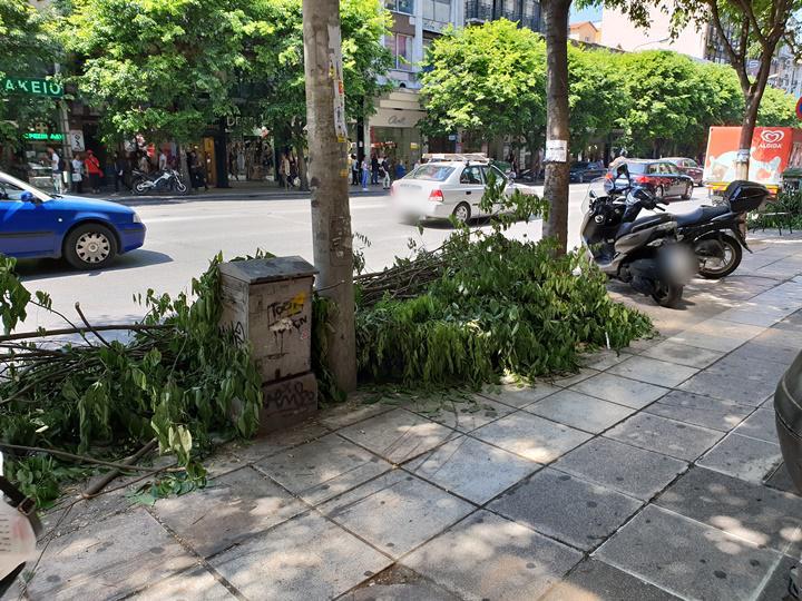 Οι φωτογραφίες είναι τραβηγμένες όπως μας ενημερώνει ο αναγνώστης στις 25/4/2018 στις 12.00 περίπου το μεσημέρι. Δείτε που παρέμειναν για μία ολόκληρη μέρα και νύχτα τα κομμένα κλαδιά και τα συμπεράσματα δικά σας.