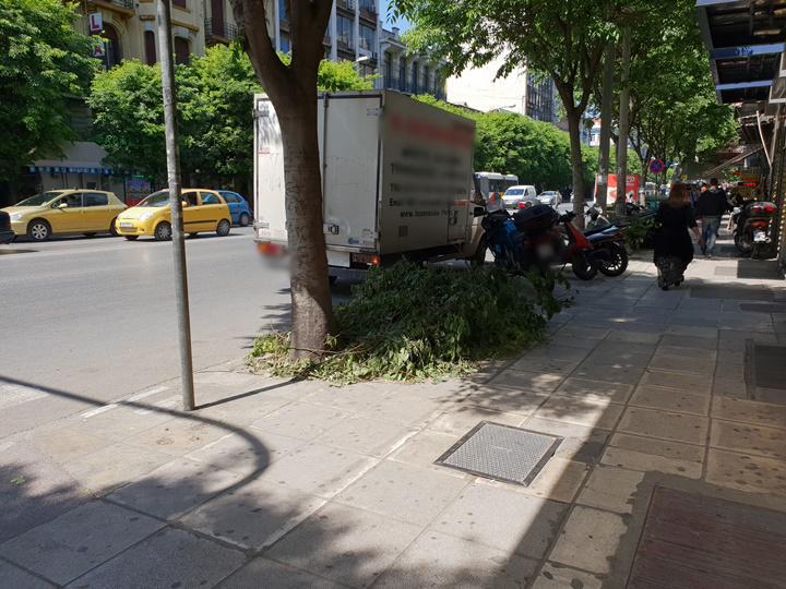 Στις 24/4/2018 το πρωί ο δήμος Θεσσαλονίκης πέρασε και κλάδεψε τα δέντρα στην Εγνατία στο ύψος της Κολόμβου, στο οικοδομικό τετράγωνο από 29 έως 37 όπως μας ενημερώνει αναγνώστης.