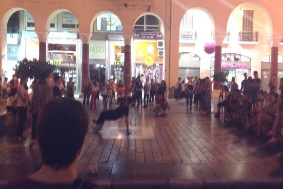 Τον τελευταίο καιρό διάφορα αυτοσχέδια ενδιαφέροντα πράγματα συμβαίνουν στο δημόσιο χώρο της Θεσσαλονίκης. Μουσικοί μεμονωμένοι, μπάντες, ακροβάτες, μάγοι, χορευτές προσφέρουν ένα μοναδικό θέαμα στους περαστικούς. Όπως αυτό το αυτοσχέδιο χιπ-χοπ ξέσπασμα, μια επίδειξη από πιτσιρικάδες που επέλεξαν την Αριστοτέλους της νύχτας για να δείξουν τις χορευτικές τους επιδόσεις. Και ο κόσμος τους αντάμειψε με χειροκρότημα.