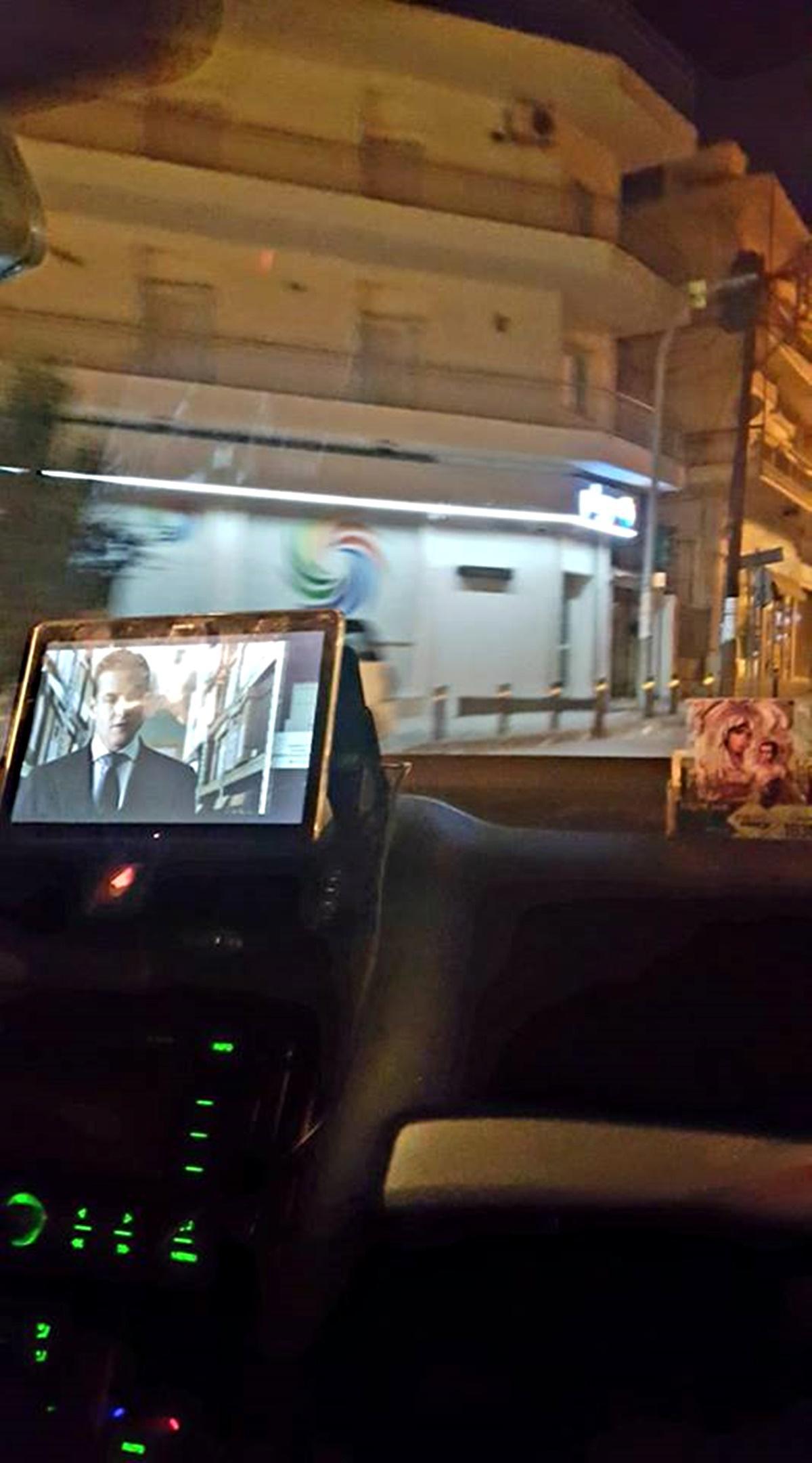 Η επιτομή της ασφαλούς οδήγησης…! Αγώι από Εγνατία με Αριστοτέλους, ως τις Συκιές με σινεφίλ ταξιτζή! Διέκοψα την παρακολούθηση της ταινίας βέβαια για να μπω, αλλά συνέχισε βλέπει απτόητος… Ευτυχώς όμως δεξιά της οθόνης, όπως φαίνεται στην φωτογραφία, (και όπως πρέπει πάντα…), είχε το εικόνισμα και φτάσαμε σώοι!!