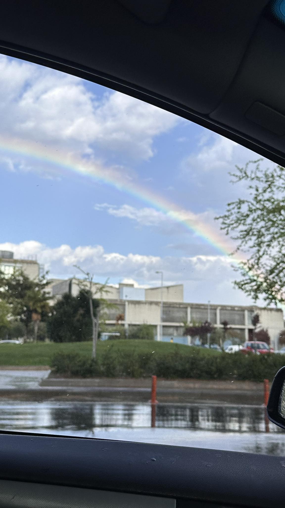 Λίγο μετά τις 6, το σημερινό Κυριακάτικο απόγευμα, ουράνιο τόξο εμφανίστηκε στη Θεσσαλονίκη μετά από ένα γρήγορο μπουρίνι, γεμίζοντας με χρώματα τον ουρανό.