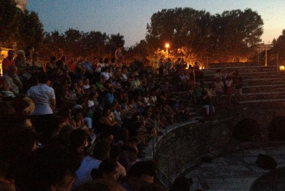 Και στο Ρωμαϊκό Ωδείο της Ρωμαϊκής Αγοράς, που όλο και πιο συχνά πια ανοίγει για εκδηλώσεις, και παρά την κακή ακουστική και τη φασαρία της γειτονιάς, τις φωνές του κοντινού πάρκου, τα διερχόμενα αυτοκίνητα και το αστικό σκηνικό που που και που σου αποσπούσαν την προσοχή, η Λαζάριδου επί σκηνής, ένα από τα κορίτσια του ογδόντα που μεγάλωσαν όμορφα στις σκηνές και στις ταινίες, βουτά στον πιο διάφανο κόσμο, στον κόσμο της ανθρώπινης ψυχής του Σολωμού, ραίνοντας το θεατή με τους σπόρους της αμφιβολίας πάνω στην αιώνια μάχη του Καλού με το Κακό. Και με φωνή που σκίζει τη νύχτα γίνεται ο ιερομόναχος, η γυναίκα της Ζάκυθος, ο αντίλαλος μιας άλλης εποχής, γίνεται ένας λόγος να ανατριχιάζεις κάθε φορά που μιλά για τα δεινά ενός λαού που μοιάζουν ατέλειωτα και επαναλαμβανόμενα. Από τότε μέχρι σήμερα. Ωραία βραδιά. Πολύτιμη.
