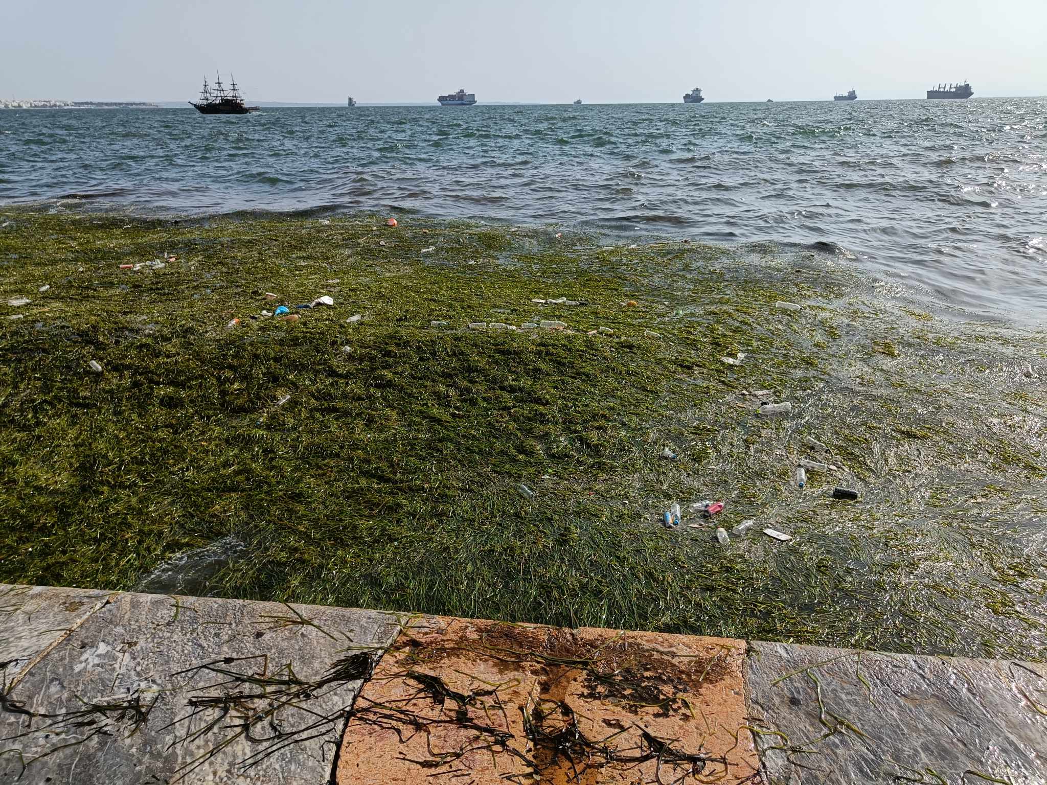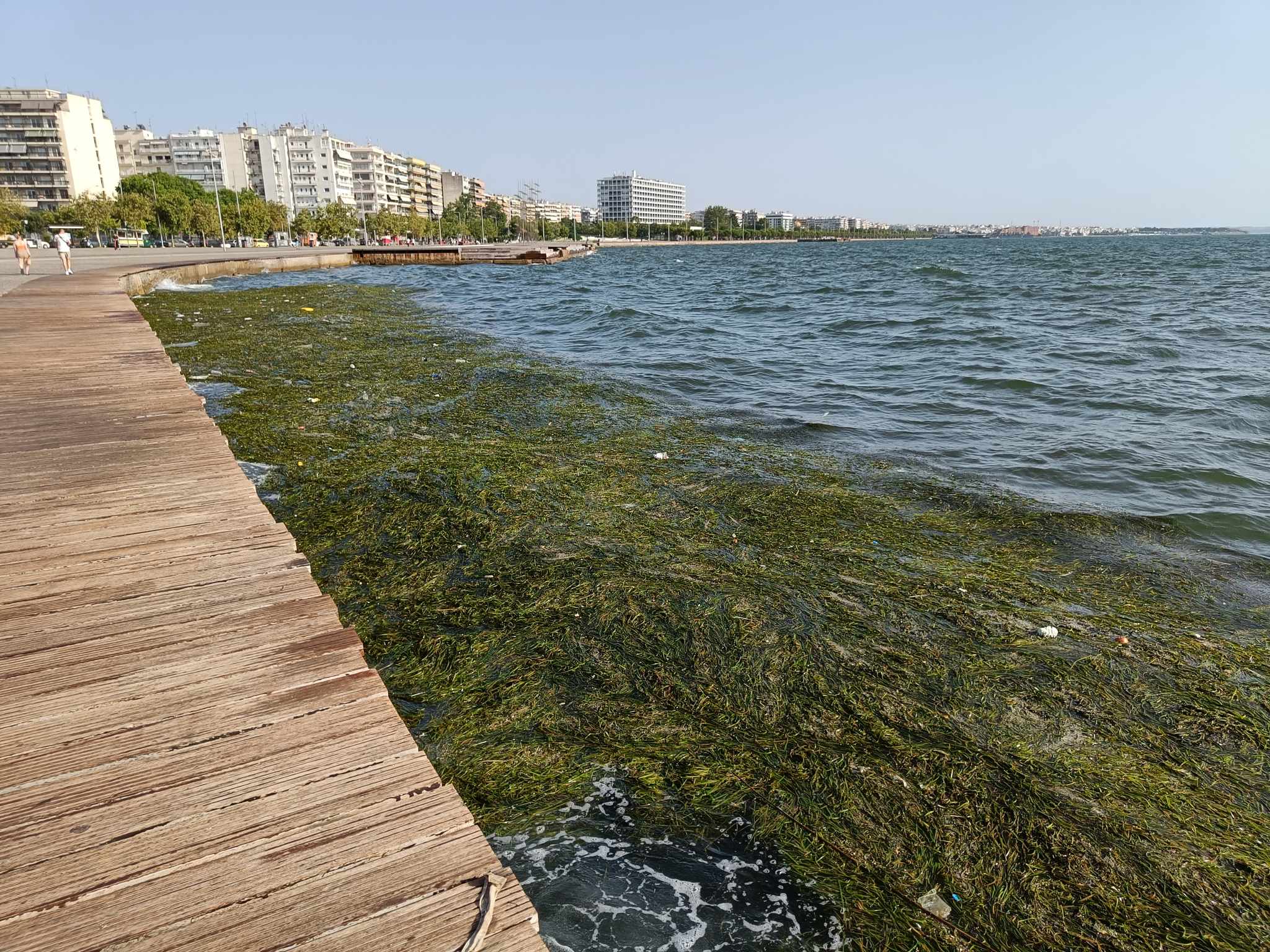 Παραμένει γεμάτος σκουπίδια και φυτοπλαγκτόν ο Θερμαϊκός