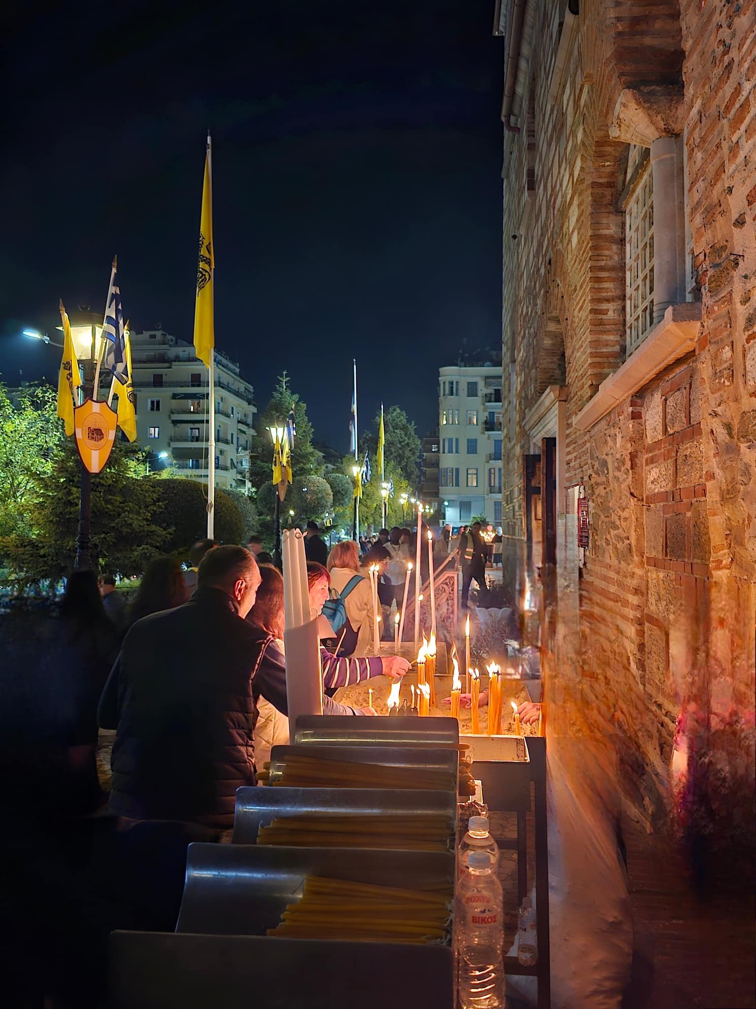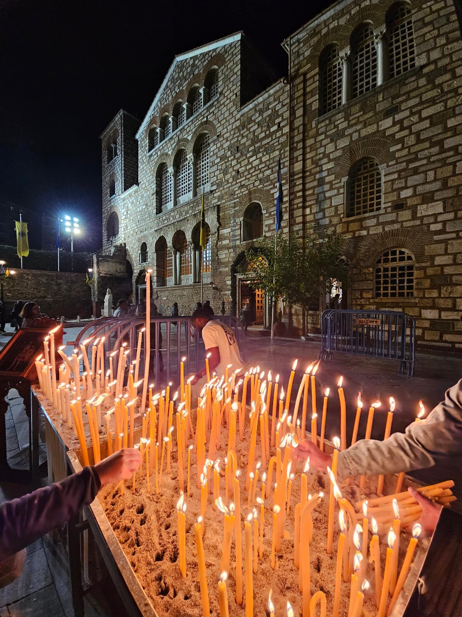 Παραμονή του πολιούχου της Θεσσαλονίκης, του Αγίου Δημητρίου. Χιλιάδες πιστοί καταφθάνουν από παντού, για να ανάψουν ένα κερί στον Άγιο.