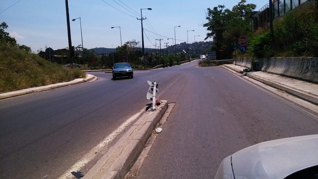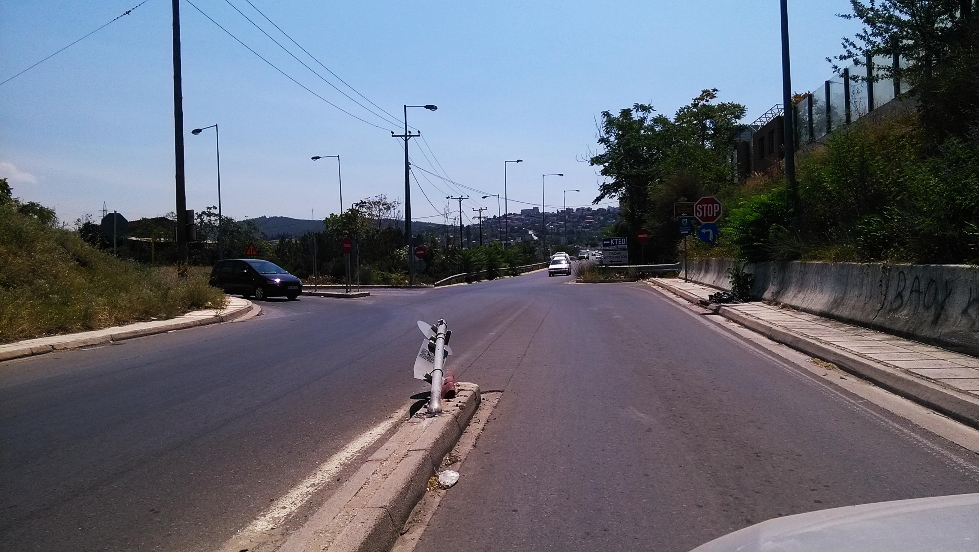 Σύμφωνα με τα όσα καταγγέλει ο αναγνώστης η πινακίδα παραμένει σε αυτή την κατάσταση περισσότερο από μία εβδομάδα τώρα. Το ακριβές σημείο – από την πλευρά που κοιτάει η πινακίδα- είναι η έξοδος των οχημάτων από την περιφερειακή οδό προς Παπαγεωργίου με κατεύθυνση Δυτικά.