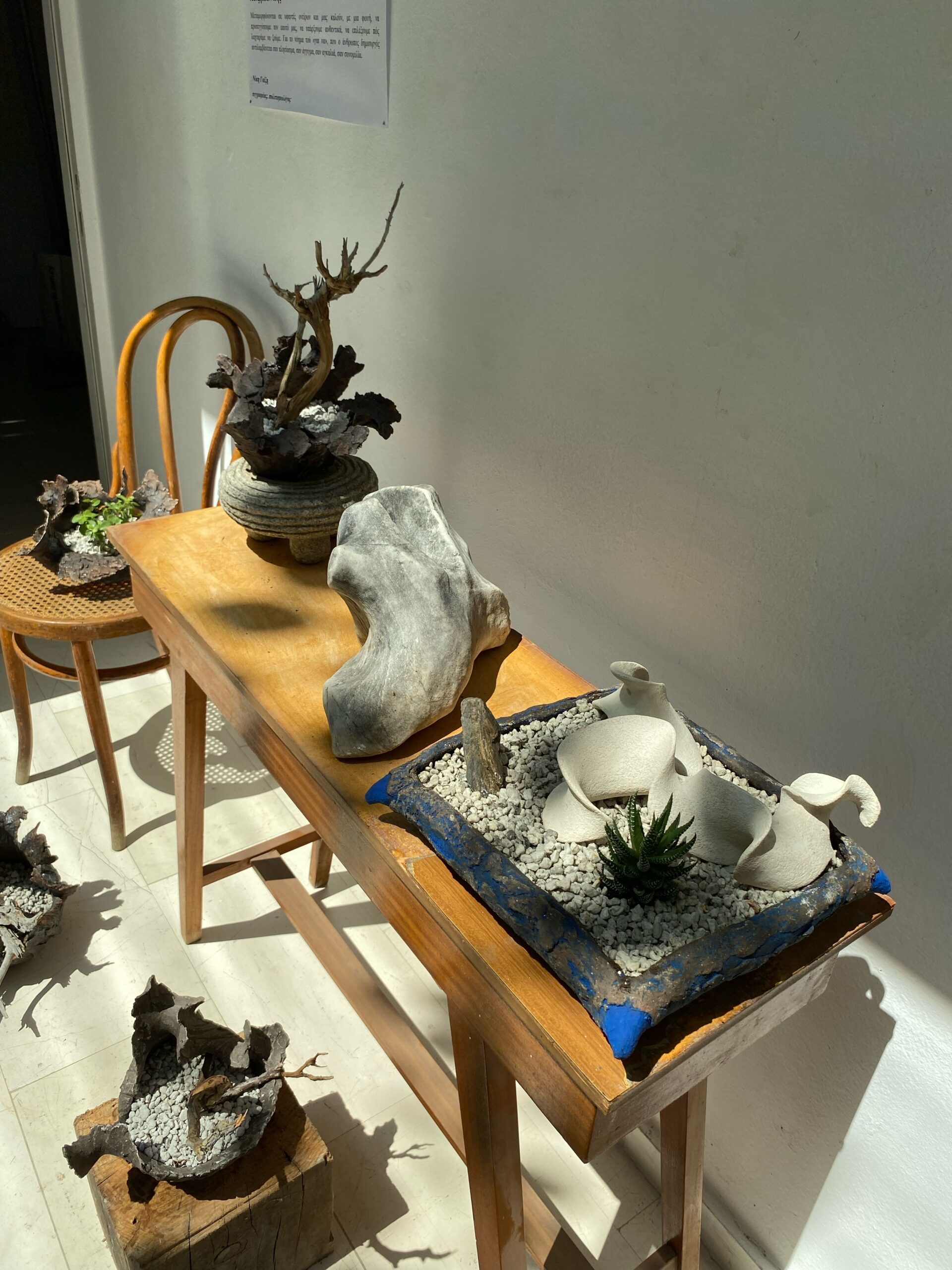 Για τους τρεις σπουδαίους εικαστικούς, παίζει ο χρόνος σαν παιδί. Το χώμα, το ξύλο, οι καρποί της γης ψάχνουν την «Οδό διαφυγής» από τον Λαβύρινθο του Χρόνου. Η διάρκεια της ανθρώπινης ζωής στα έργα τους φαντάζει σαν μια φιγούρα χωμάτινης στιγμής. Η γη σαν μια μεγάλη κολοκύθα καθαρού, ατέλειωτου φωτός. Όλα τα του γήινου σώματος φθαρτά. Τα της φύσης στέρεα, όσο οι ρίζες μιας ελιάς. Τα της ψυχής έντιμα, όσο ο τροχός ίσα κυλά. Τα του ανθρώπου σαν πλησίασμα, σαν συνομιλία.