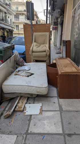 Παραμονή Πρωτοχρονιάς και στην περιοχή της Ανάληψης, το πεζοδρόμιο έχει “κλείσει” από σκουπίδια και έπιπλα, που εμποδίζουν τους κατοίκους και τους πεζούς στις μετακινήσεις τους.