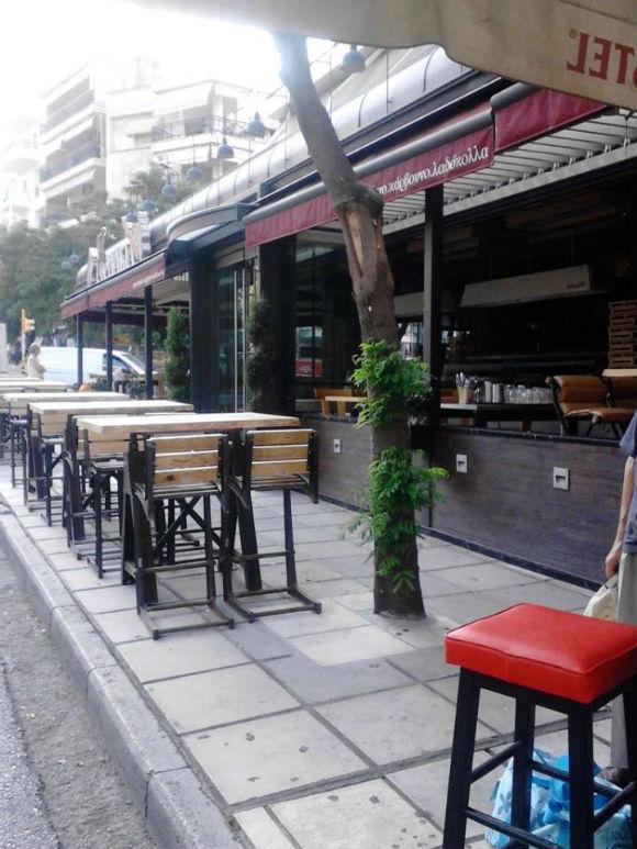 Κάθε βδομάδα φτάνει σε μας μια τουλάχιστον καταγγελία προσπάθειας κοπής δέντρων προς όφελος τραπεζοκαθισμάτων. Στην επόμενη εικόνα ιδιοκτήτης ταβέρνας στο κέντρο είχε ξεκινήσει να πριονίζει το δέντρο που βλέπετε για να απλώσει με άνεση τα καθίσματα του μέχρι τη στιγμή που κλήθηκε ο Δήμος και τον σταμάτησε.