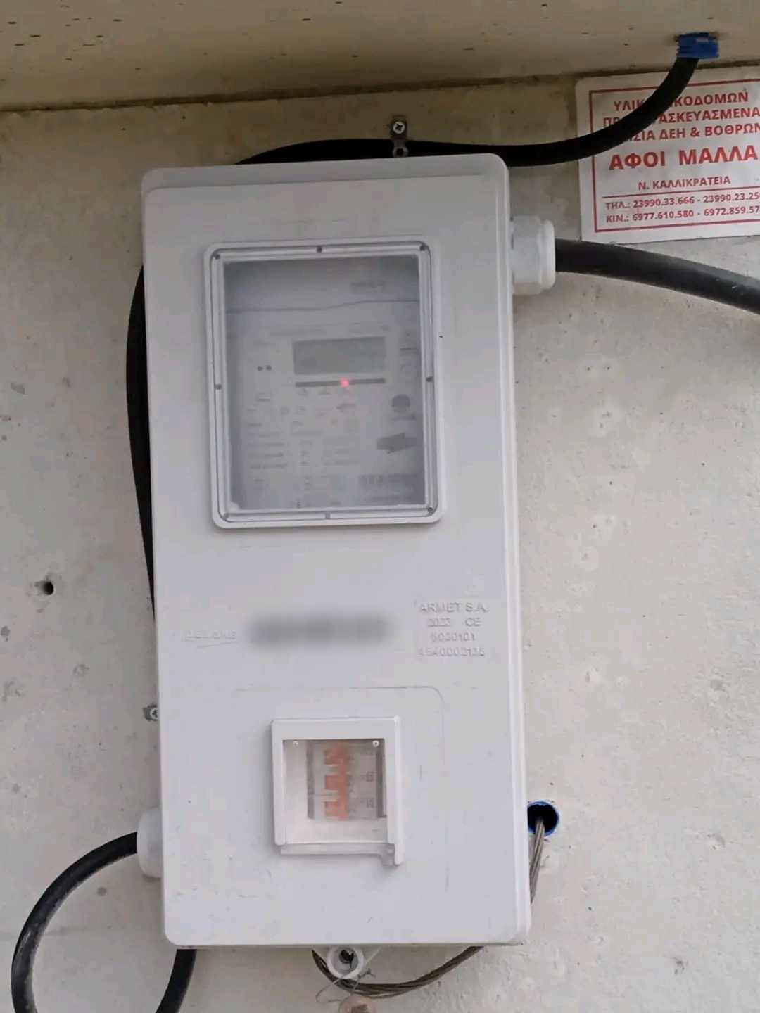 Το τσιμεντένιο κατασκεύασμα πάνω στην άμμο, η απόλυτη πρόκληση παράνομου χτισίματος, φιλοξενεί, πάνω στην άμμο ένα ρολόι της ΔΕΗ.