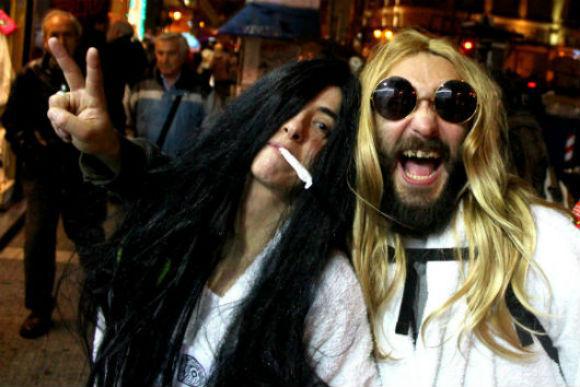 Το σκηνικό ξεκίνησε απ΄το μεσημέρι με τα παραδοσιακά τσικνίσματα στο κέντρο, συνεχίστηκε με το ποδηλατικό καρναβάλι και ολοκληρώθηκε με τσούρμο νέους κάθε ηλικίας με ευφάνταστα μασκαρέματα. Δεν σταμάτησε να βρέχει χτες βράδυ, αλλά ο κόσμος δεν τρόμαξε. Ούτε απ΄την κρίση ούτε απ΄την υγρασία. Τα λεωφορεία πηγαινοερχόντουσαν γεμάτα μασκαράδες. Ένα 78Ν που περνούσε τις μικρές ώρες της νύχτα από την Όλγας γέμισε ασφυκτικά κάπου στη στάση Ευζώνων. Και αυτό συνεχίστηκε όλη νύχτα.