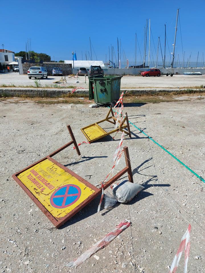 Παρατημένοι κάδοι, πλαστικό που κάποτε χρησίμευε για να οριοθετεί έργα, πεσμένες ταμπέλες άναρχα για τον ίδιο σκοπό και σκουπίδια κάθε λογής, μια ανάσα από το Μέγαρο Μουσικής, το εμβληματικό Παλατάκι, την Κρήνη και φυσικά το κέντρο της πόλης.
