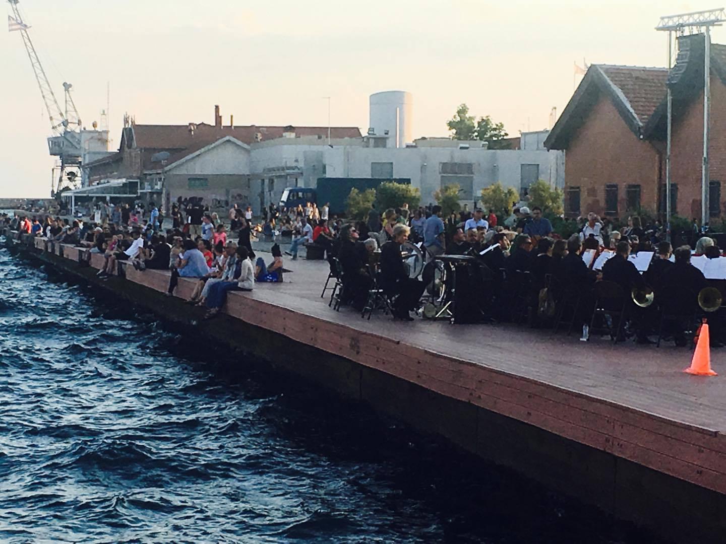 Don’t cry for me Αrgentina με θέα το ηλιοβασίλεμα. Ο κόσμος πλημμύρισε την Πρώτη Προβλήτα και η Φιλαρμονική τους αποζημειώνει με τον καλύτερο τρόπο. Μια εξαιρετική εκδήλωση στο πλαίσιο της Ευρωπαϊκής Ημέρας Μουσικής. Με ανθρώπους όλων των ηλικιών παρόντες και χαλαρούς στην πρώτη προβλήτα.