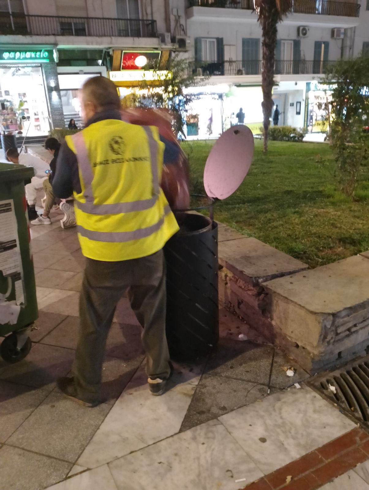 Πραγματικά, απορούσα με το πώς θα μπορούσε να συμμαζευτεί αυτό το χάλι. Κόσμος να πετάει τα πράγματα κάτω, ενώ δίπλα υπήρχαν κάδοι. Συνεχώς. Παρόλα αυτά, οι ήρωες της μέρας, και της κάθε μέρας, τα κατάφεραν.