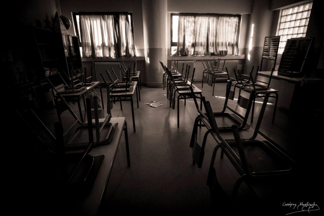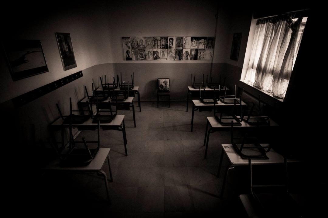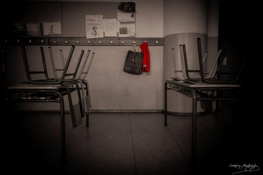 Τα σχολεία ανάβουν φώτα ξανά. Μετά από δυο μήνες στο σκοτάδι. Ο Σωτήρης Μουσλόπουλος φωτογράφησε την ερημιά των τόπων που κανονικά σφύζουν από ζωή.