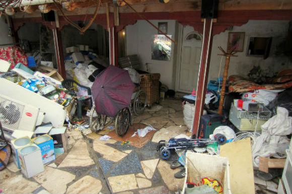 Νιώθοντας ακόμα πιο τυχερός εκμεταλλεύτηκε την τοποθεσία με τα μύρια πλεονεκτήματα, αφού δίπλα ακριβώς στην αυλή του και αριστερά έχει δημιουργηθεί ένας μικρός σκουπιδότοπος πολύ χρήσιμος για τη γειτονιά. Έτσι δεν χρειάζεται να πάει μακριά όταν ξεσκαρτάρει το υλικό του. Πολύ βολικά, ό,τι δεν ανακυκλώνεται ώστε να μπορεί να πουληθεί, τα βγάζει έξω από την αυλή του, στοιβαγμένα “προσεκτικά” στο τείχος (να μην είναι και μες στη μέση του δρόμου).