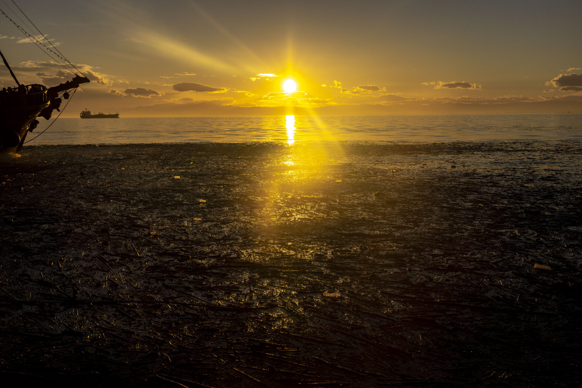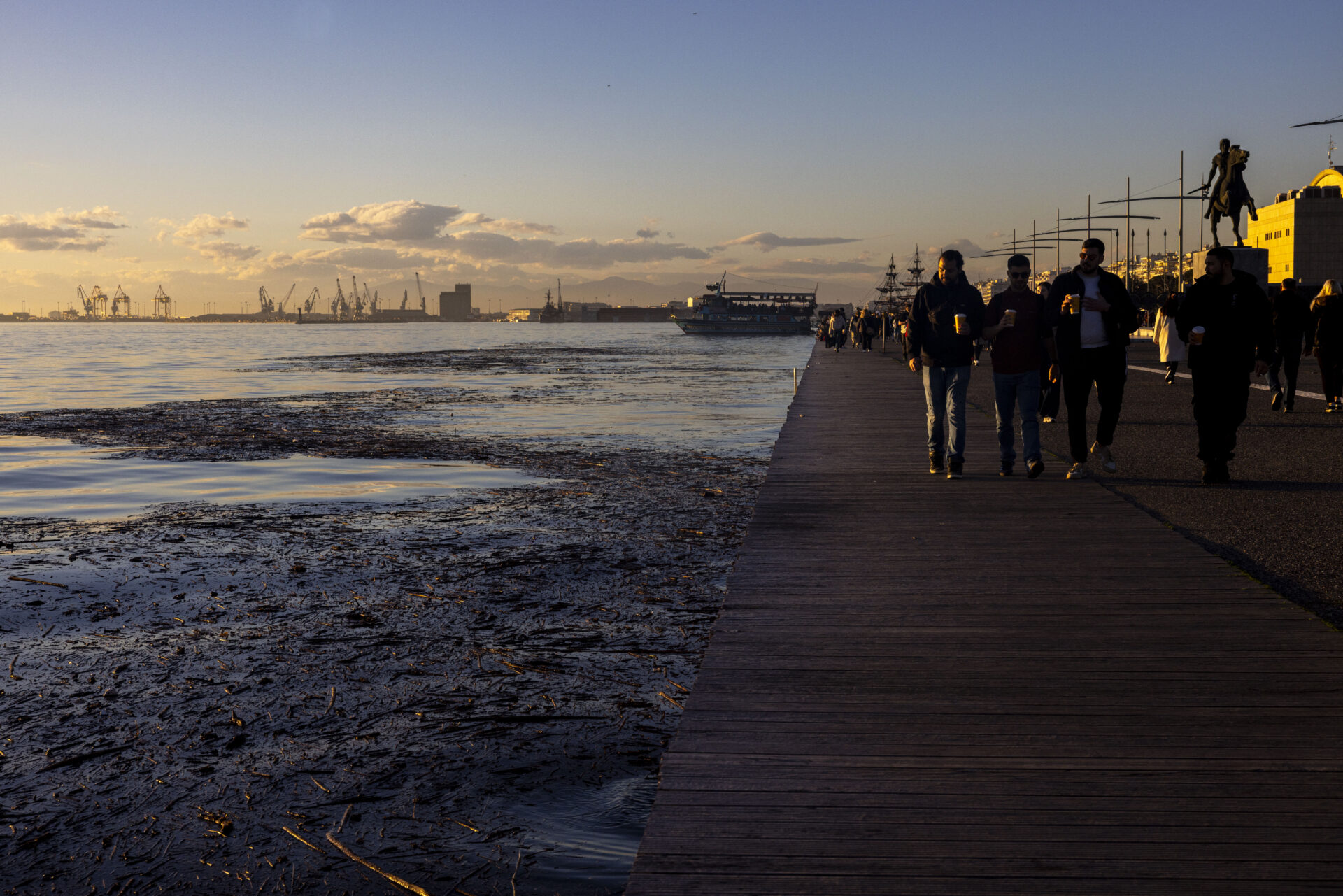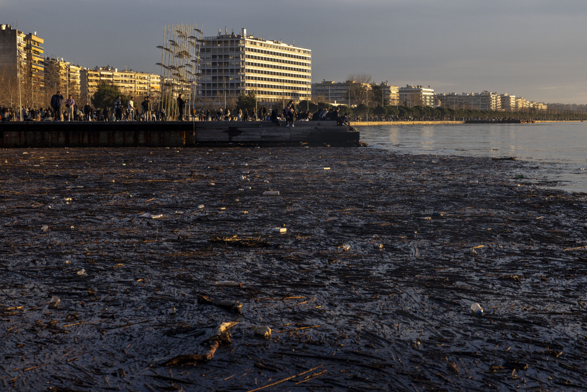 Με ένα αποκρουστικό θέαμα ήρθαν αντιμέτωποι κάτοικοι και τουρίστες που επέλεξαν να κάνουν τη Σαββατιάτικη τους βόλτα στο παραλιακό μέτωπο της Θεσσαλονίκης, καθώς τα νερά του Θερμαϊκούσκεπάστηκαν από μια βλέννα από φυτοπλαγκτόν, μικροαντικείμενα και σκουπίδια.