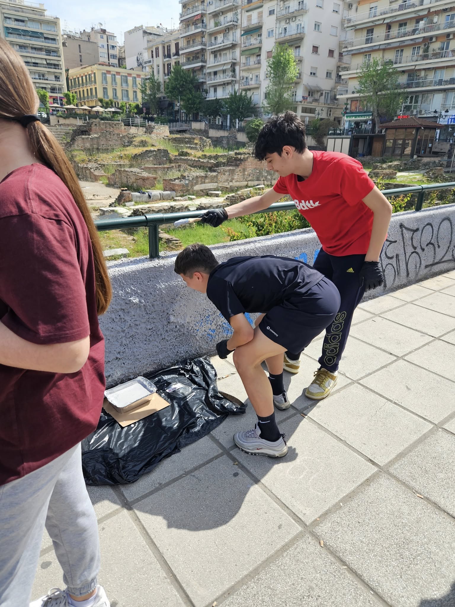 Οι μαθητές της Β1′ γυμνασίου του Πειραματικού Σχολείου Πανεπιστημίου Θεσσαλονίκης, με πρωτοβουλία του Σωματείου φίλων του κέντρου της Θεσσαλονίκης και των καθηγητών του Πειραματικού, έκαναν λίγο ομορφότερη την αρχαία Ρωμαϊκή αγορά.