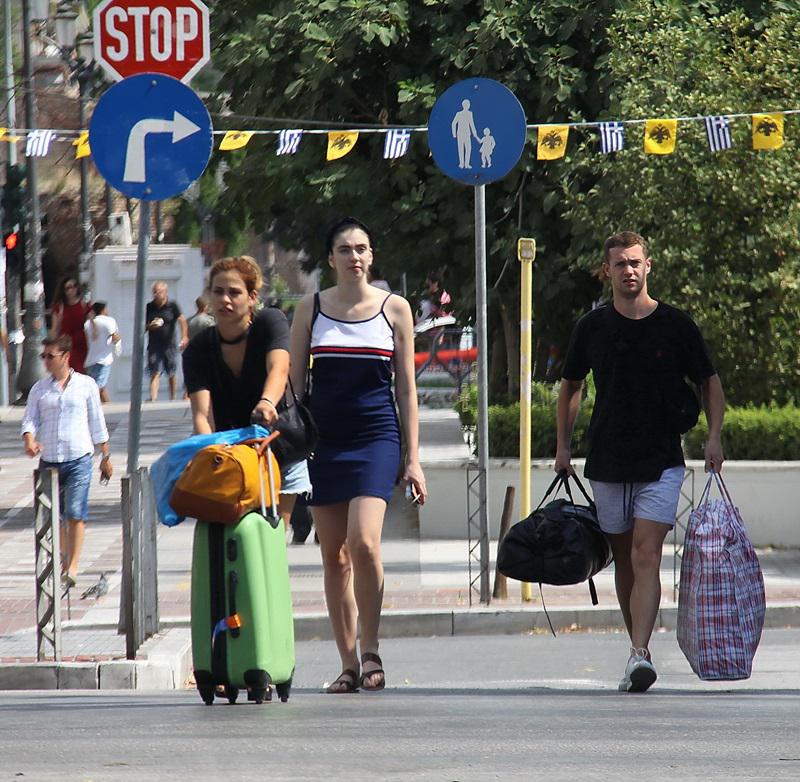 Ακόμη και η βόλτα στη Νέα Παραλία μετρά απουσίες, ενώ ο κόσμος που κυκλοφορούσε τις μέρες που μας πέρασαν έσερνε μια βαλίτσα πίσω του είτε για να φύγει είτε γιατί κατέλυε εδώ ως τουρίστας.